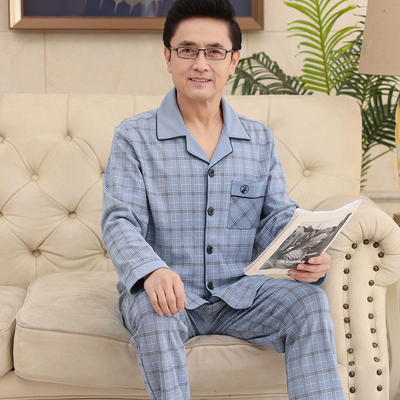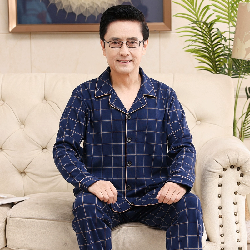 | nameOriginal | Spring and autumn pure cotton men's long-sleeved pajamas for middle-aged dads |
