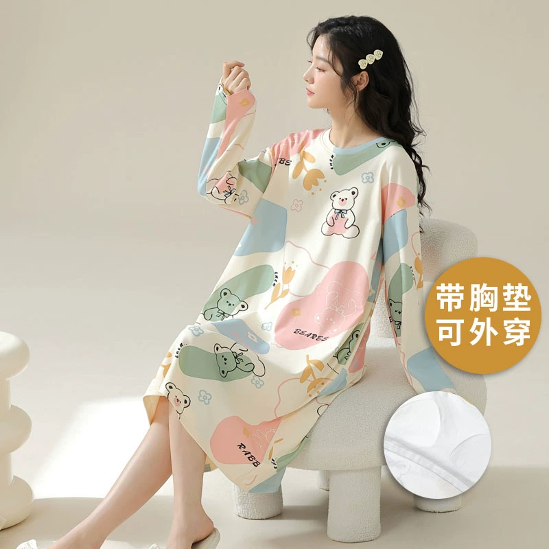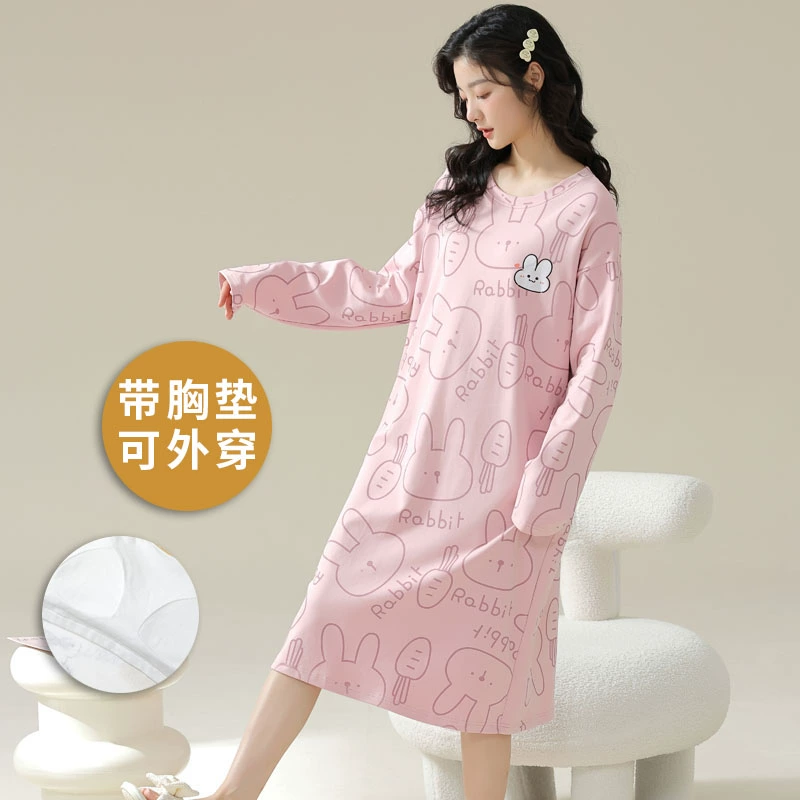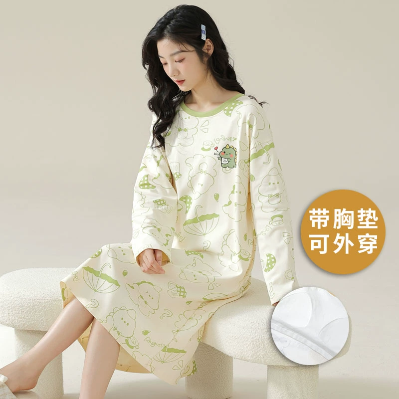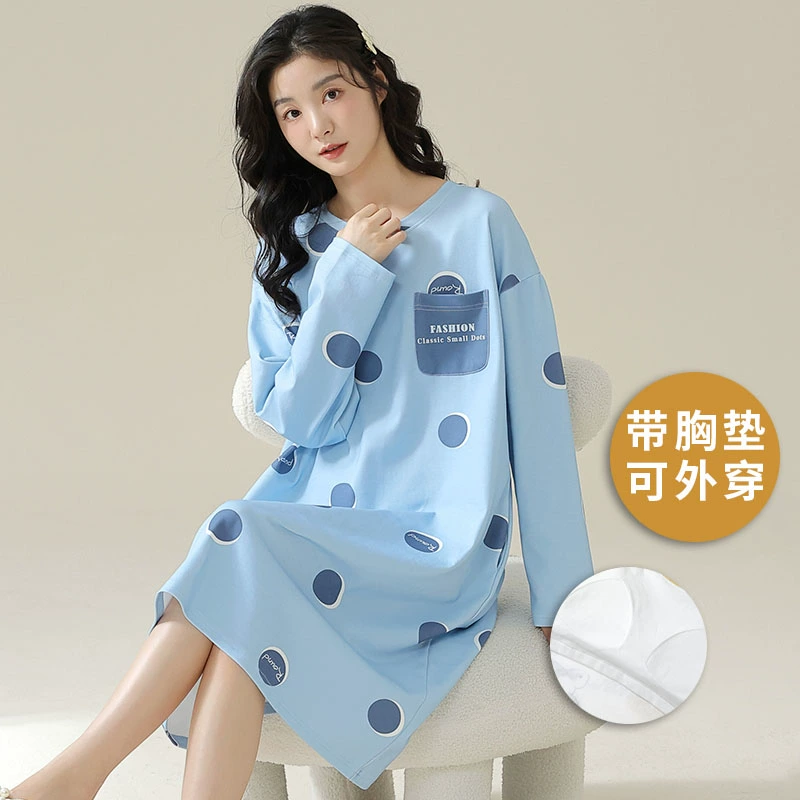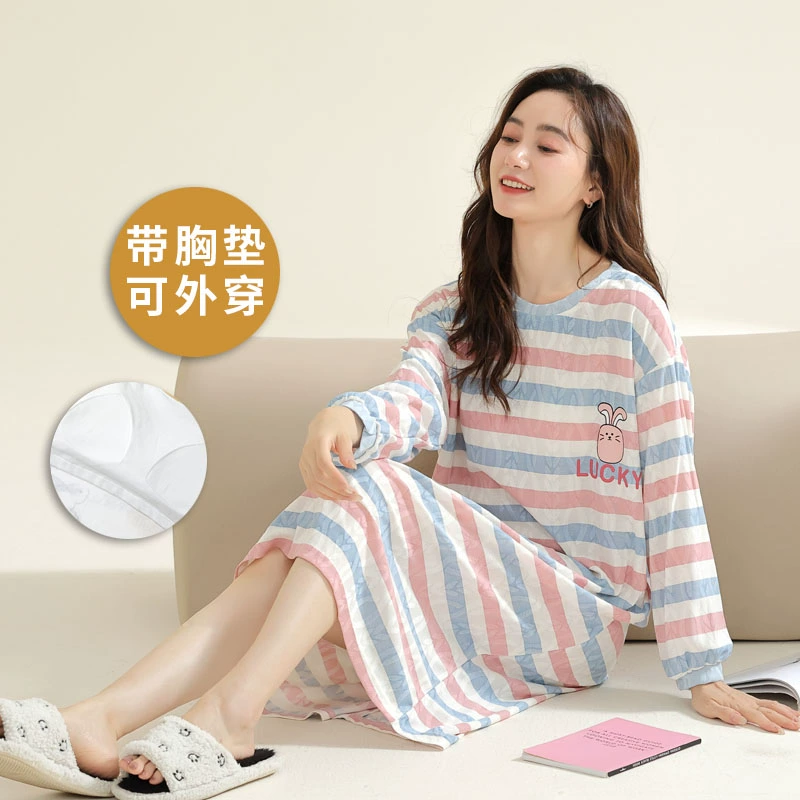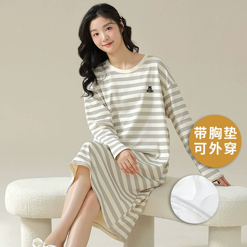 Spring and autumn pure cotton one-piece striped Korean style women’s nightgown