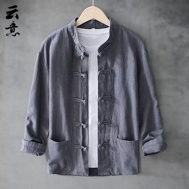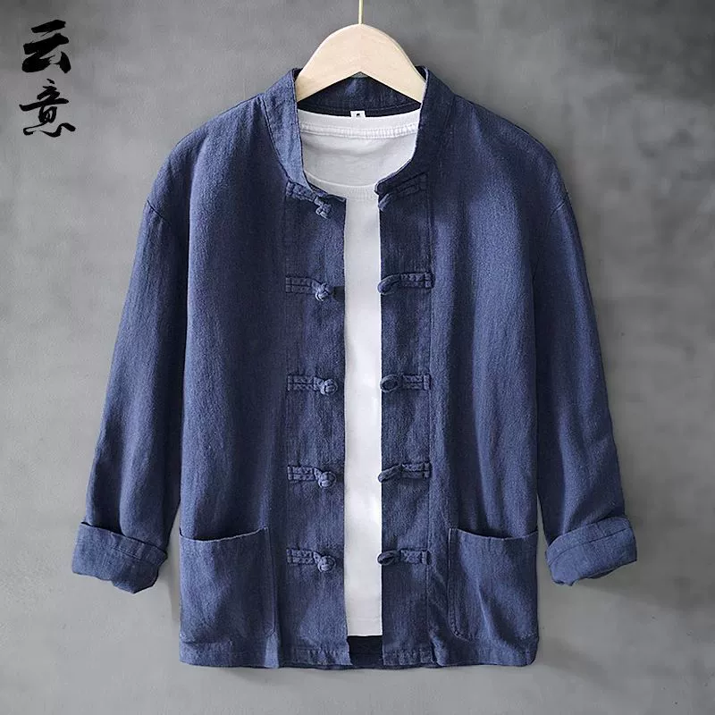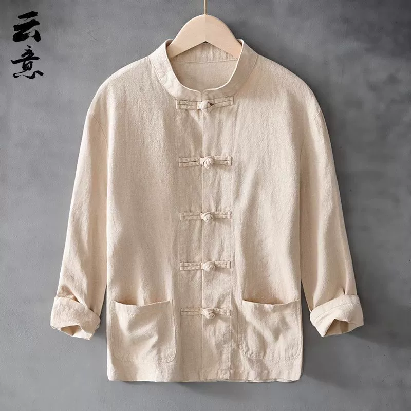 Spring and Autumn Ramie Loose Retro Style Pan-Buckle Tang Suit