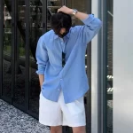 | nameOriginal | Spring and Autumn shirts blue casual tops men's shirts American Korean bottoming shirts men's trendy design shirts |