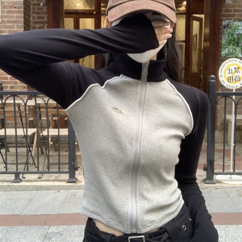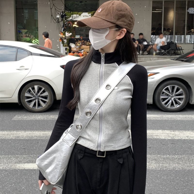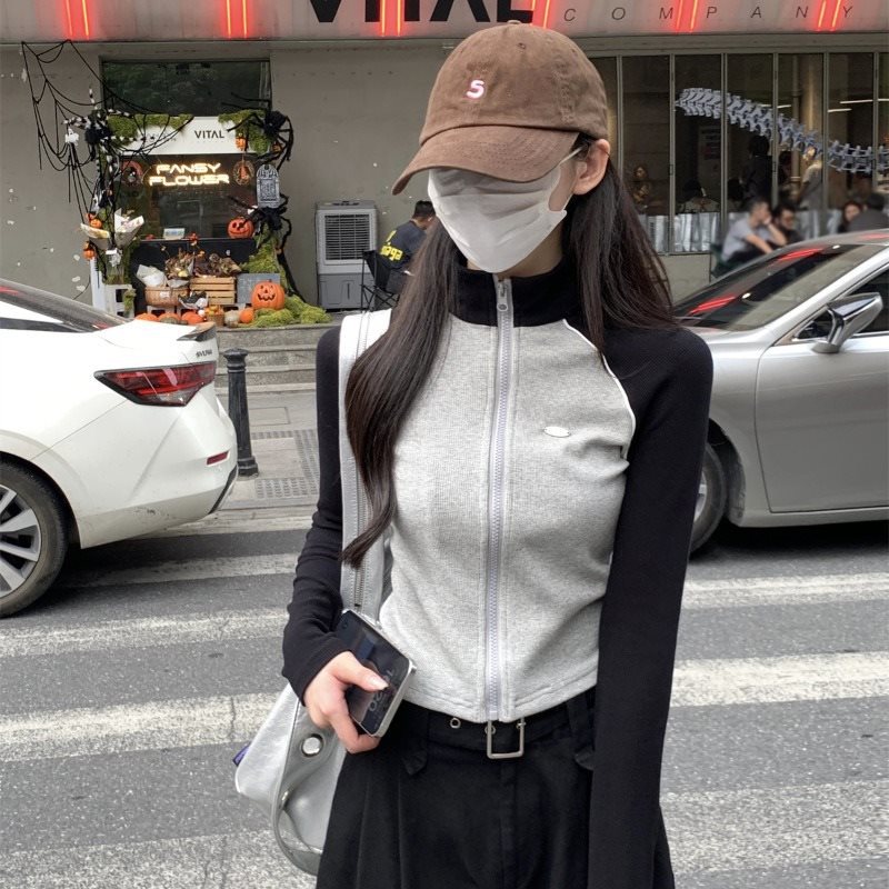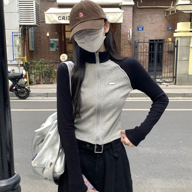 | nameOriginal | Spring and Autumn Slim-fit American Style Zipper Design Sense Niche Inner T-shirt Sweater Women's Autumn Slim-fit Short Small Top |