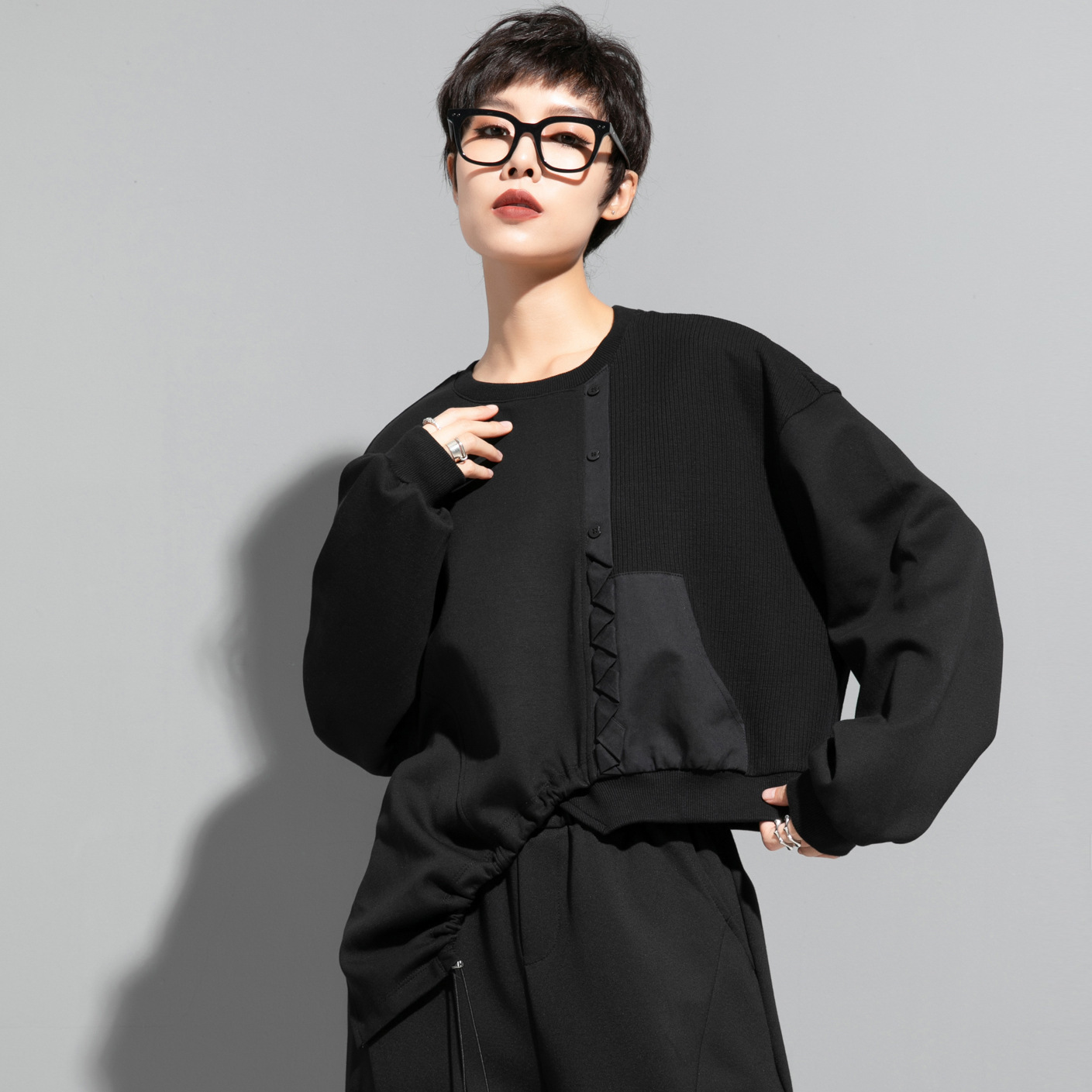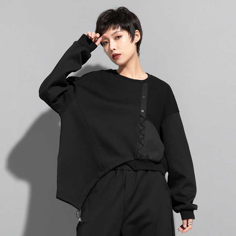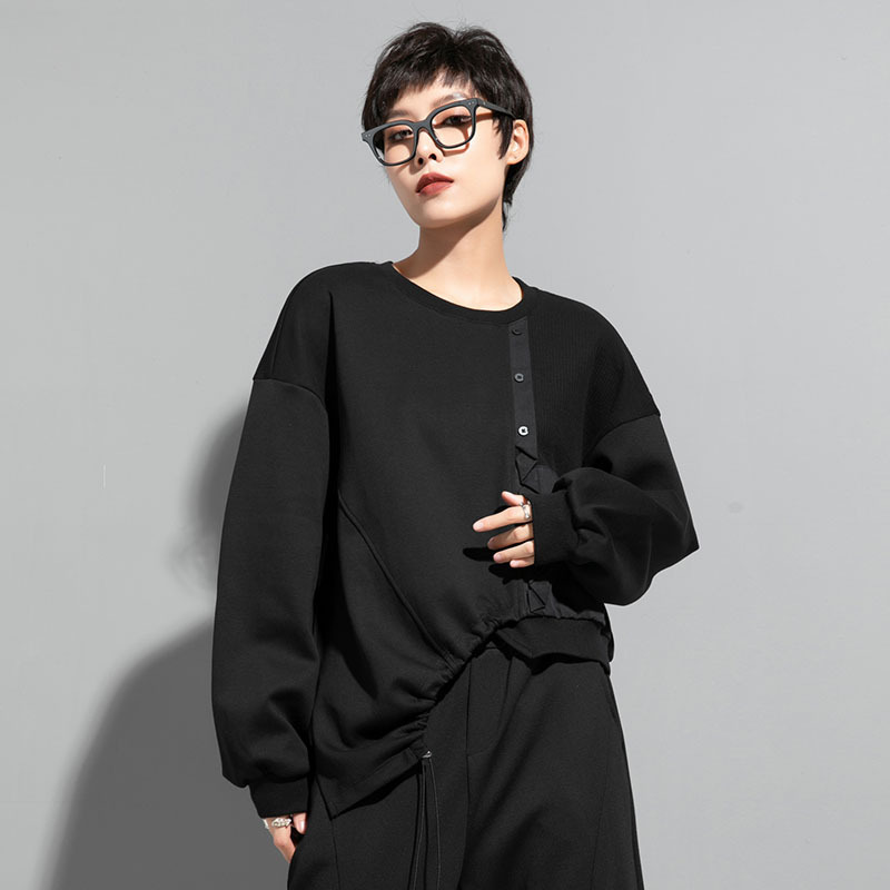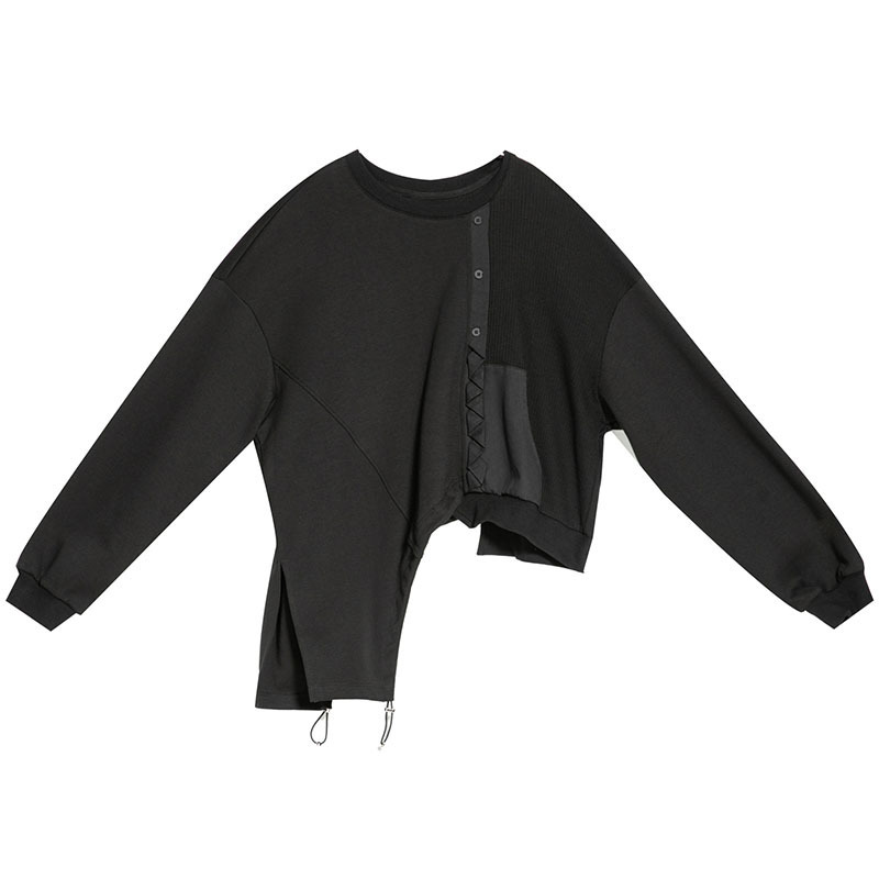 | nameOriginal | Spring and Autumn Solid Color Stitching Loose Sweatshirt Distinctive Split Drawstring Irregular Top Casual Dark Fashion Women's Clothing |