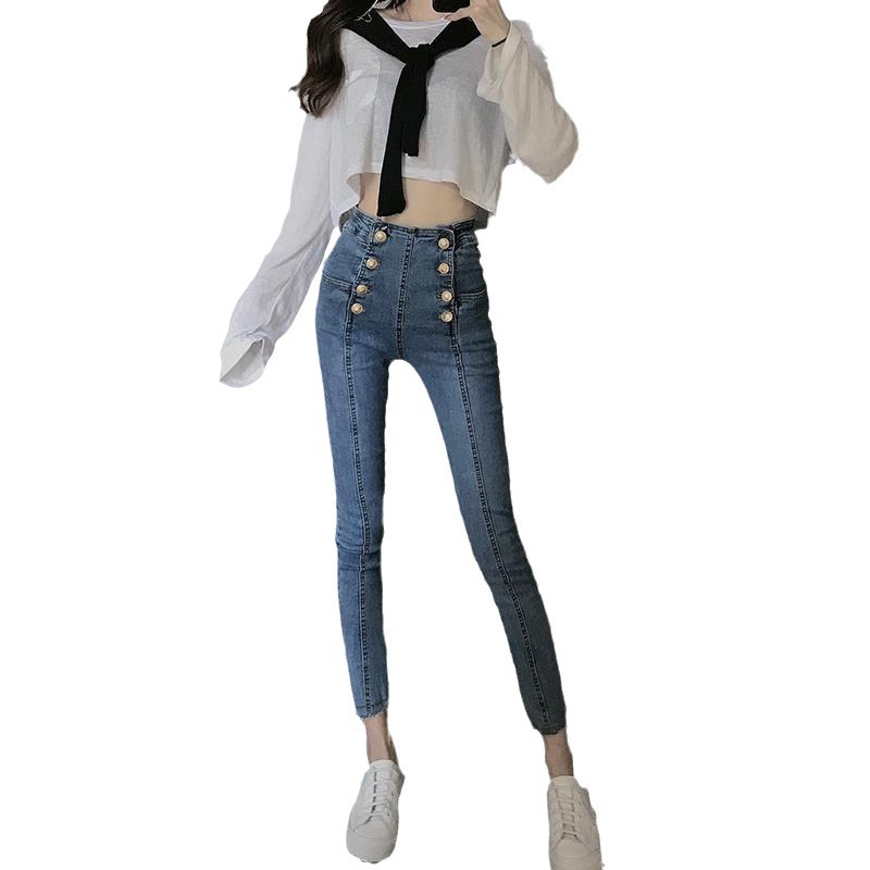 | nameOriginal | Spring and Autumn South Korea Internet Popular High Waist Jeans Women's Abdominal Slimming Fashionable Stretch Tight Foot Pencil Cropped Trendy Pants |