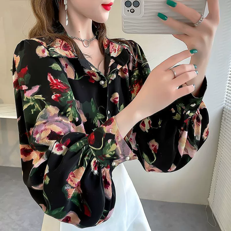 | nameOriginal | Spring and Autumn Style Chiffon Lantern Sleeve Lapel Printed Shirt |