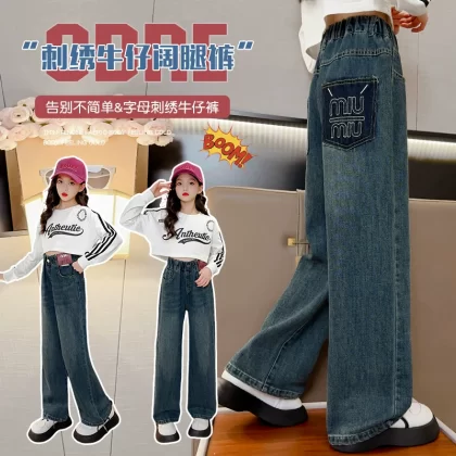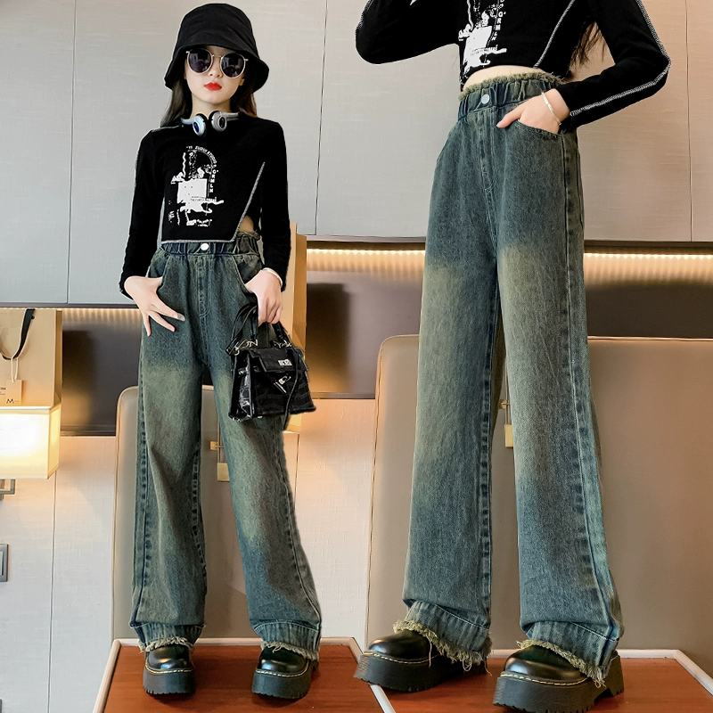 Spring and Autumn Style Old Fashioned Straight Leg Pants for Girls