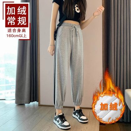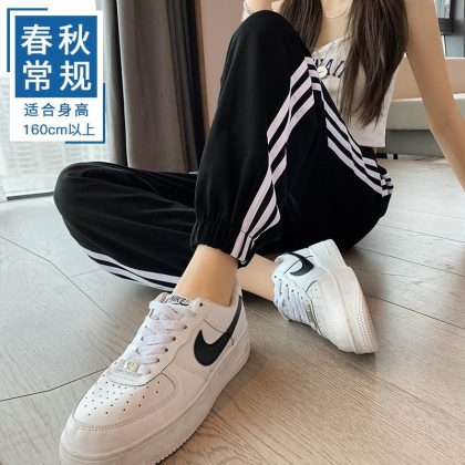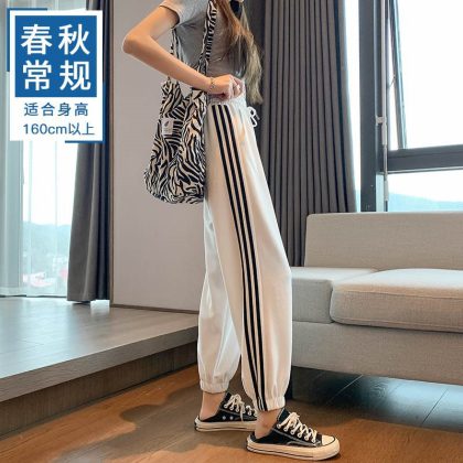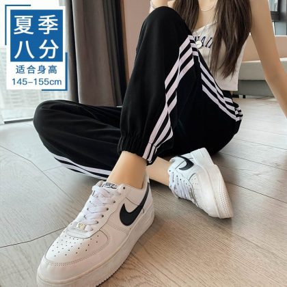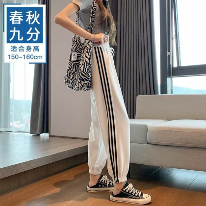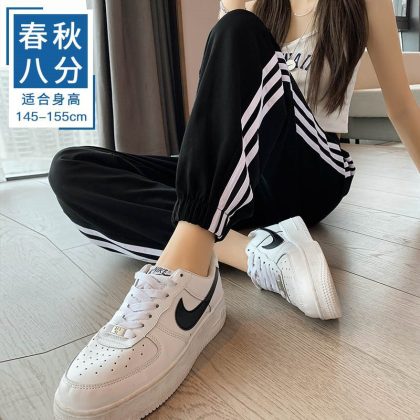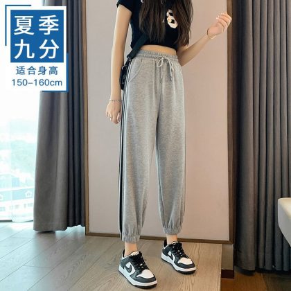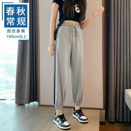 Spring and Autumn Summer Bundled Leg Sports Pants Women’s Casual Lantern Sweatpants Loose Small Children’s Black New 2024