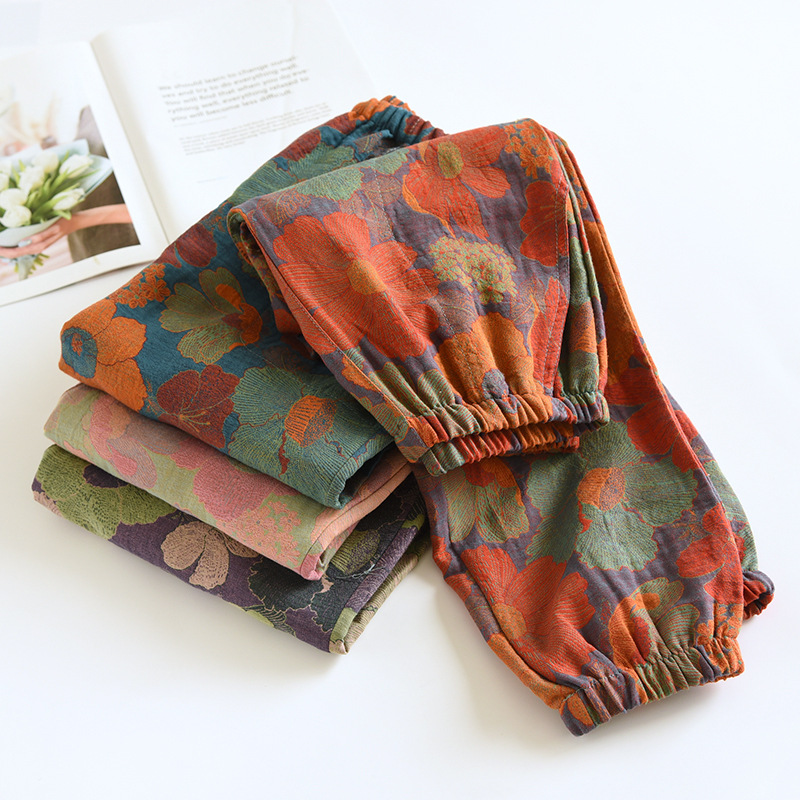 | nameOriginal | Spring and Autumn Summer Cotton Yarn-dyed Vintage Jacquard Pajama Pants Women's Gauze Nipped Home Mom's Casual Outer Wear Trousers |