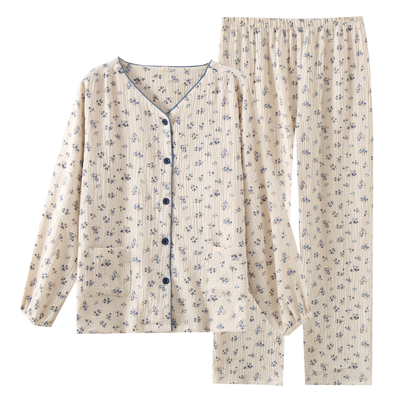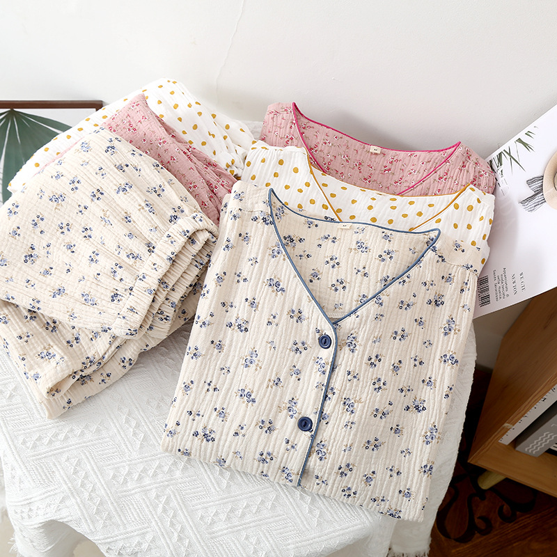 | nameOriginal | Spring and Autumn Summer Japanese Pastoral Style Long-sleeved Women's Pajamas Pure Cotton Gauze Cardigan Thin Simple Home Clothes Set |