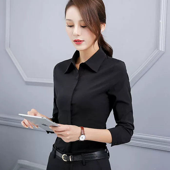 | nameOriginal | Spring and autumn temperament black long-sleeved workwear white shirt |