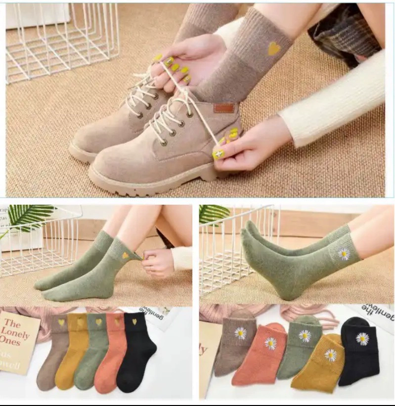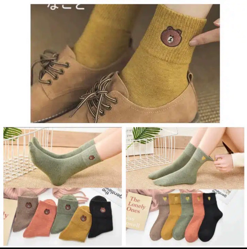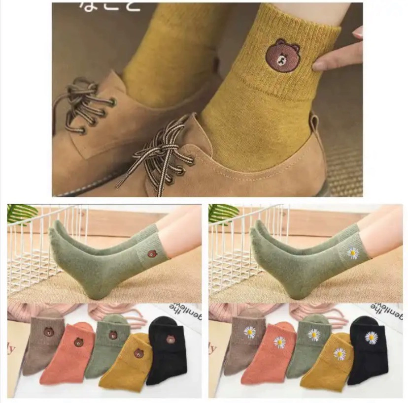 Spring and Autumn Thick Bear Socks Women's Trendy Korean Style Mid-Tube Anti-odor Breathable Autumn and Winter Students' Cute Cotton Socks Women's 5-10 Pairs