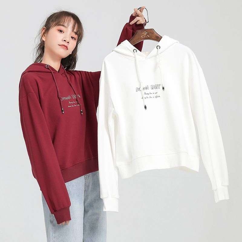 | nameOriginal | Spring and Autumn Thin Sweatshirt Women's Short Hooded Small Pullover Loose All-match Korean-style wine red 2022 New |