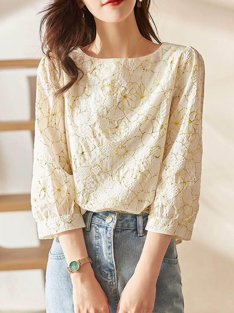Spring and Autumn 7-quarter sleeve loose floral chic and beautiful lace