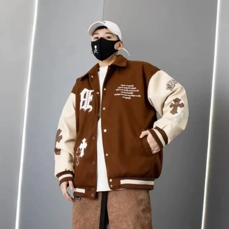 | nameOriginal | Spring and Autumn trendy brand baseball uniform men's jacket 2023 loose American high street style pu leather stitching printed woolen jacket |