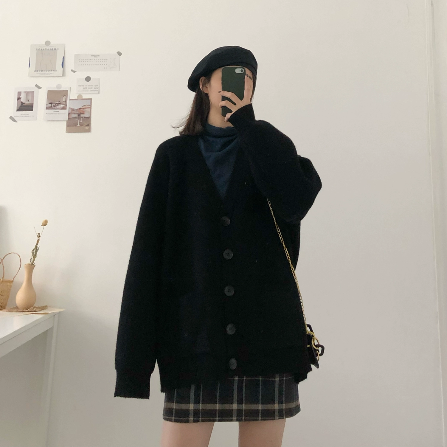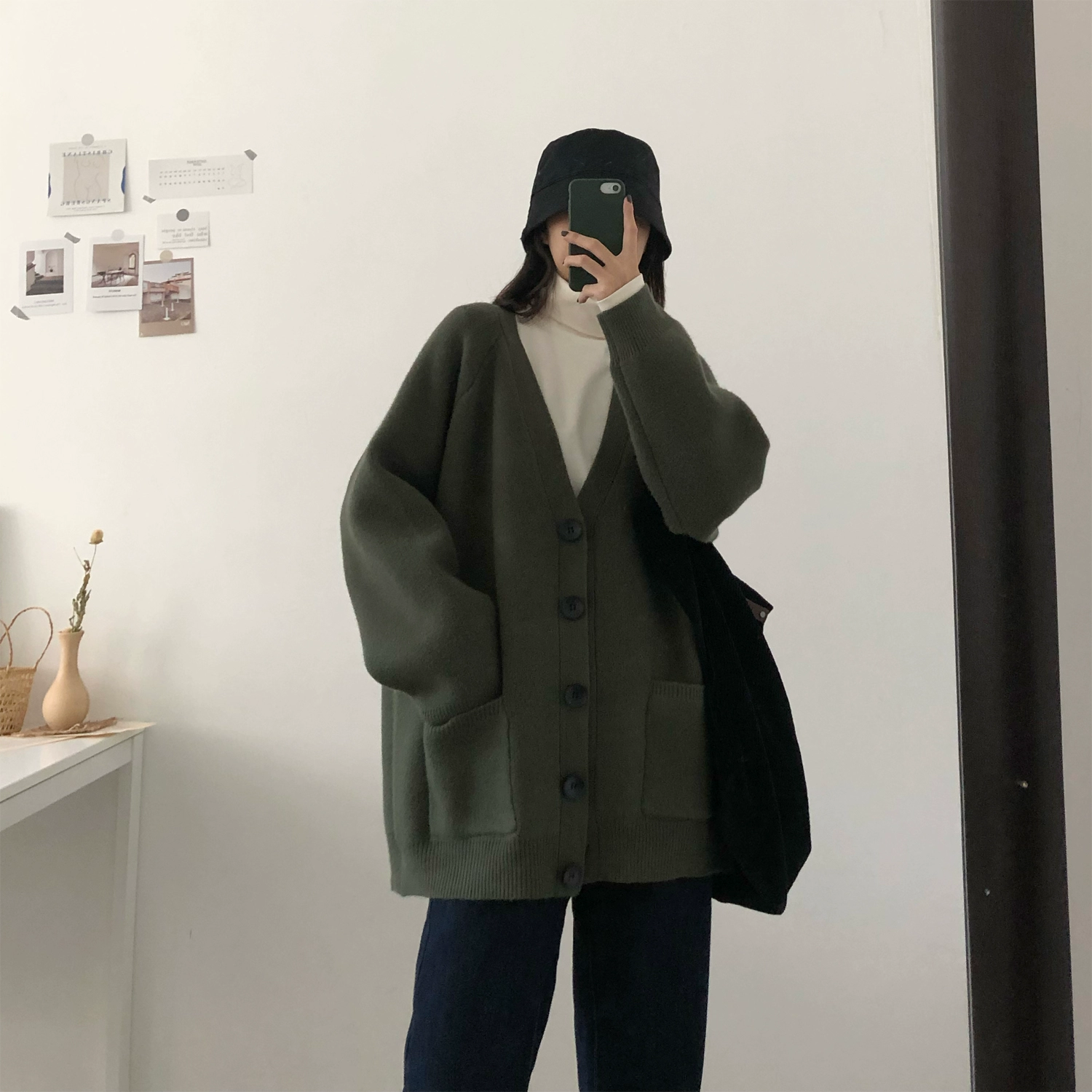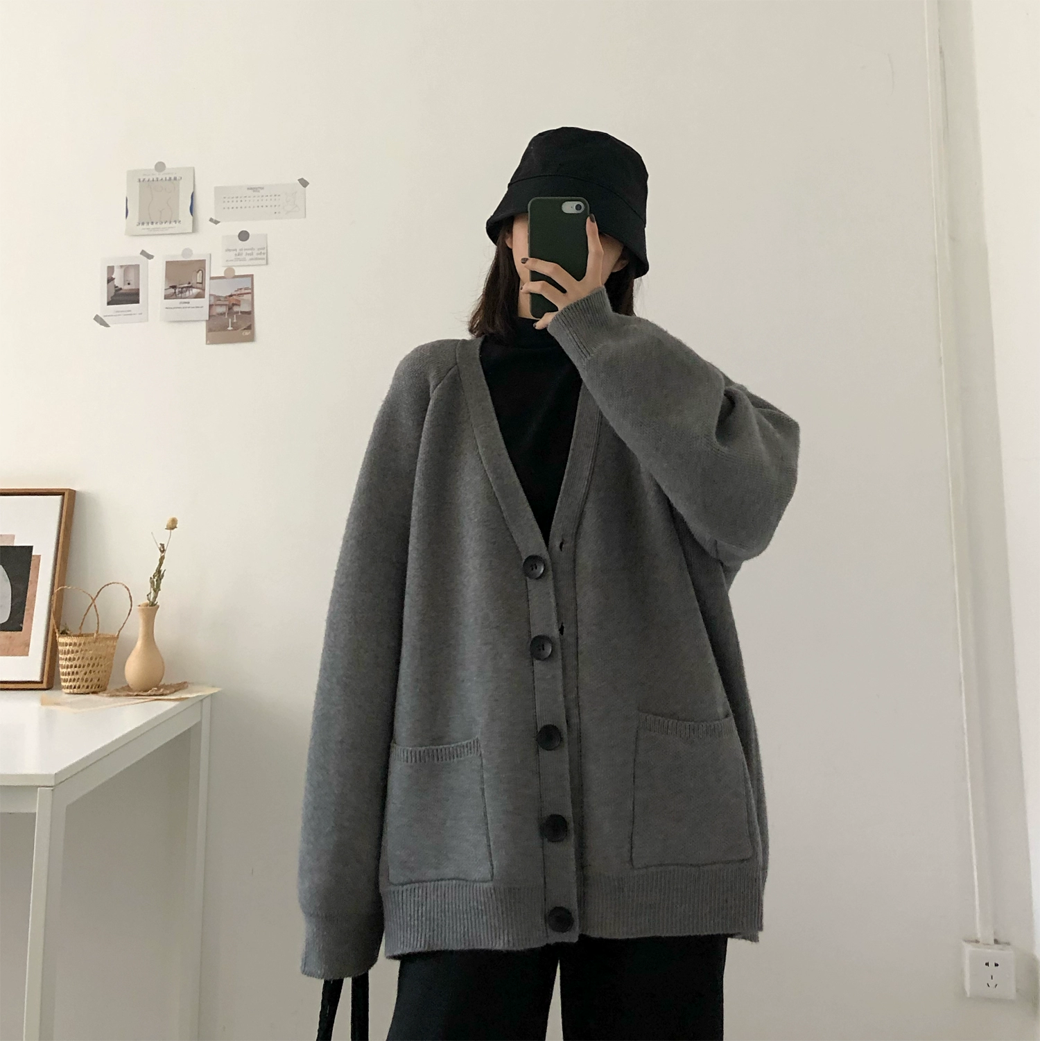 Spring and Autumn V-neck BF style top for women soft sweater cardigan for women Korean style loose slimming versatile lazy knitted jacket