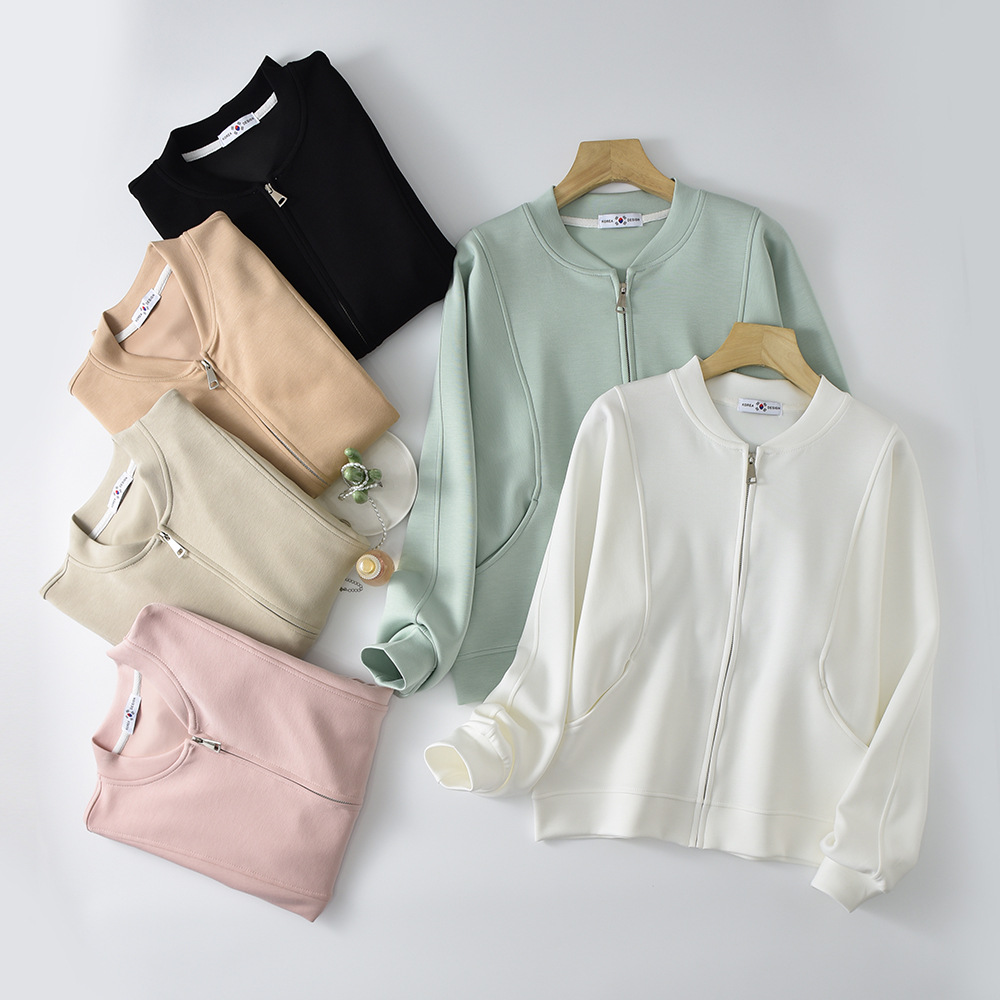 | nameOriginal | Spring and Autumn versatile solid color casual loose jacket Korean-style long-sleeved baseball uniform arc stitching pocket jacket |