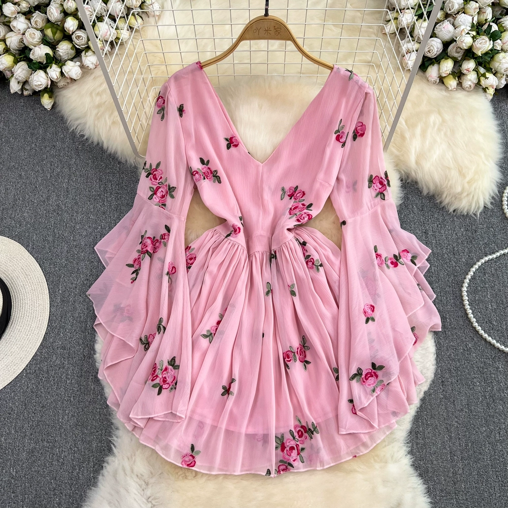 | nameOriginal | Spring and Autumn Vintage Floral Bell Sleeve Dress Embroidered |