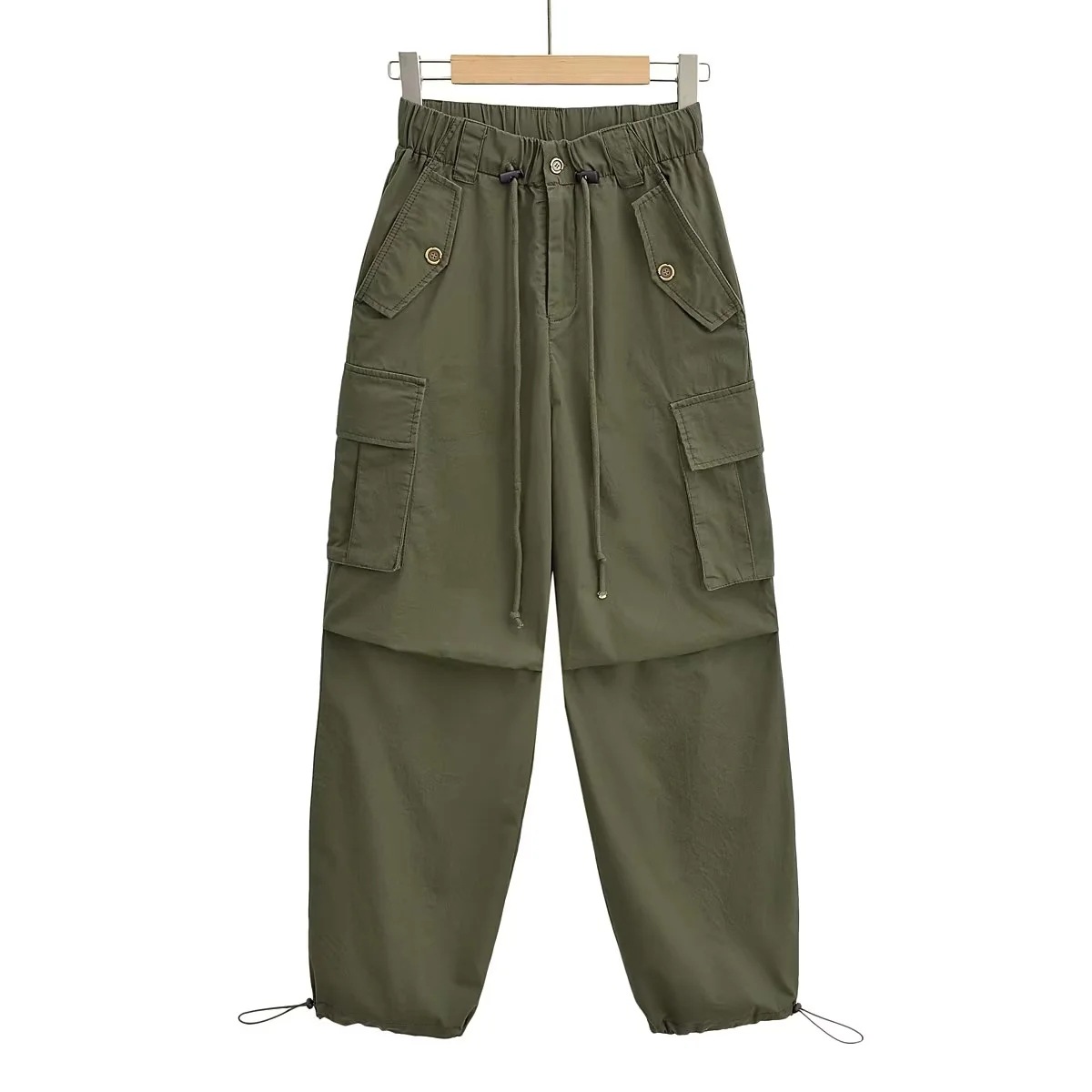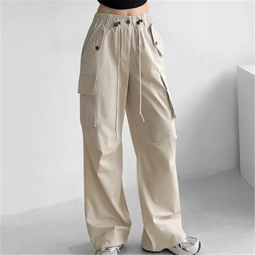| nameOriginal | Spring and Autumn wide-leg overalls women's loose slimming drawstring ankle-tied pants American street high waist straight casual trousers |
