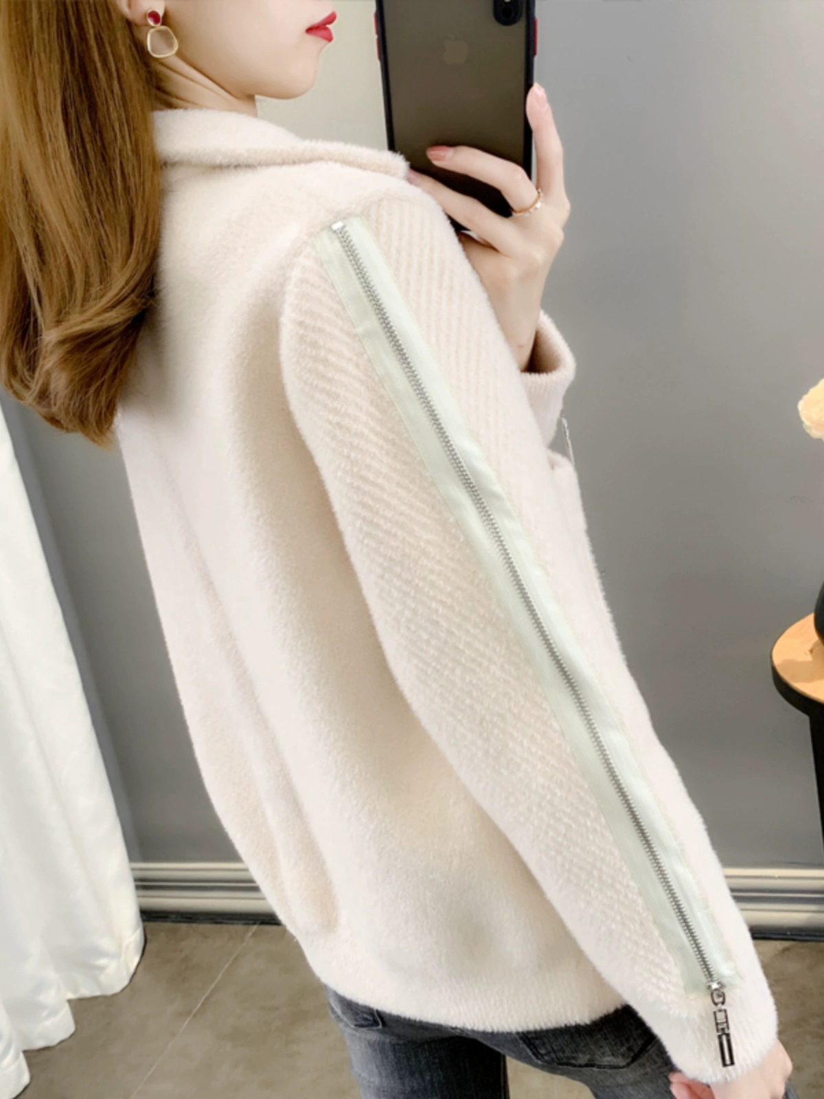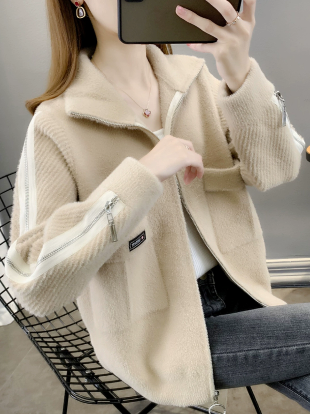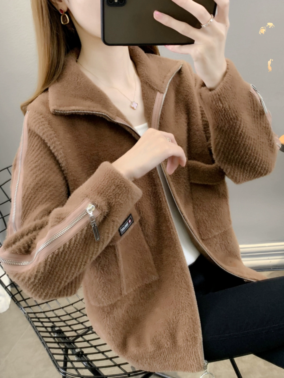 | nameOriginal | Spring and autumn women's coat short mink velvet top 2024 new fashion loose and versatile zipper knitted cardigan |