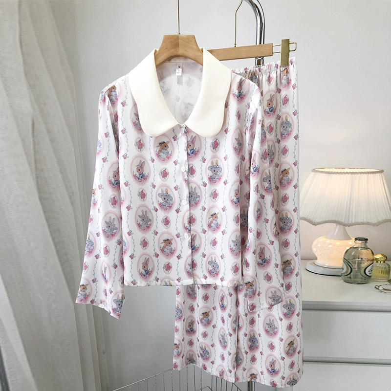 | nameOriginal | Spring and autumn women's high-end ice silk home wear pajamas |