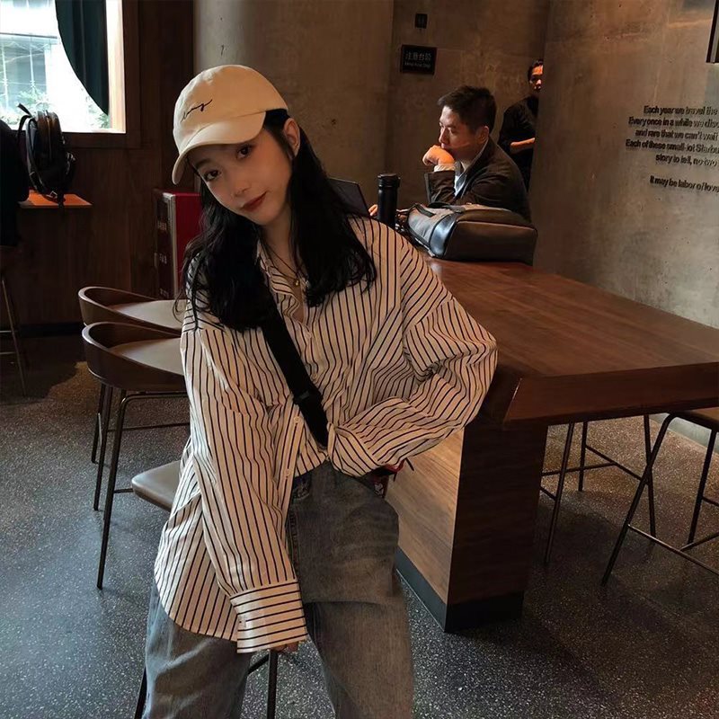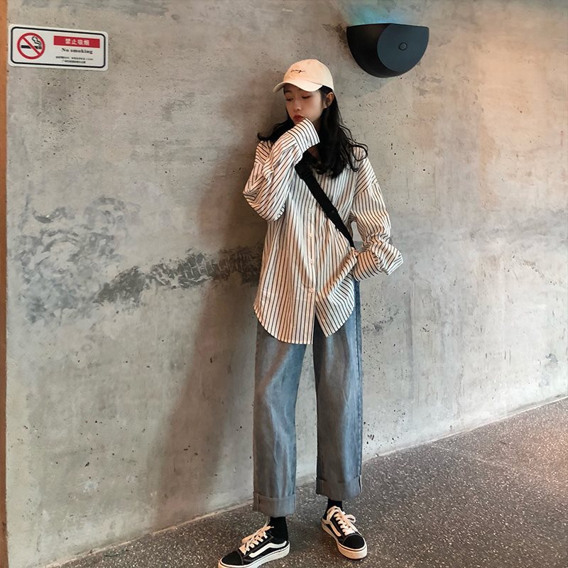 | nameOriginal | Spring and Autumn Women's Korean BF Style Loose All-match Striped Shirt Mid-length Long-sleeved Casual Shirt Top Trendy Coat |