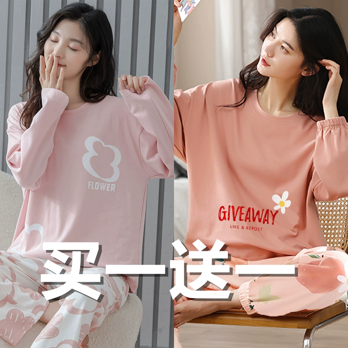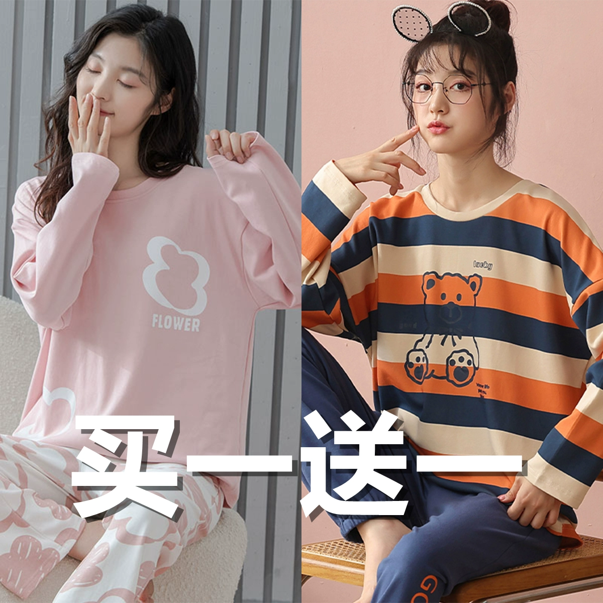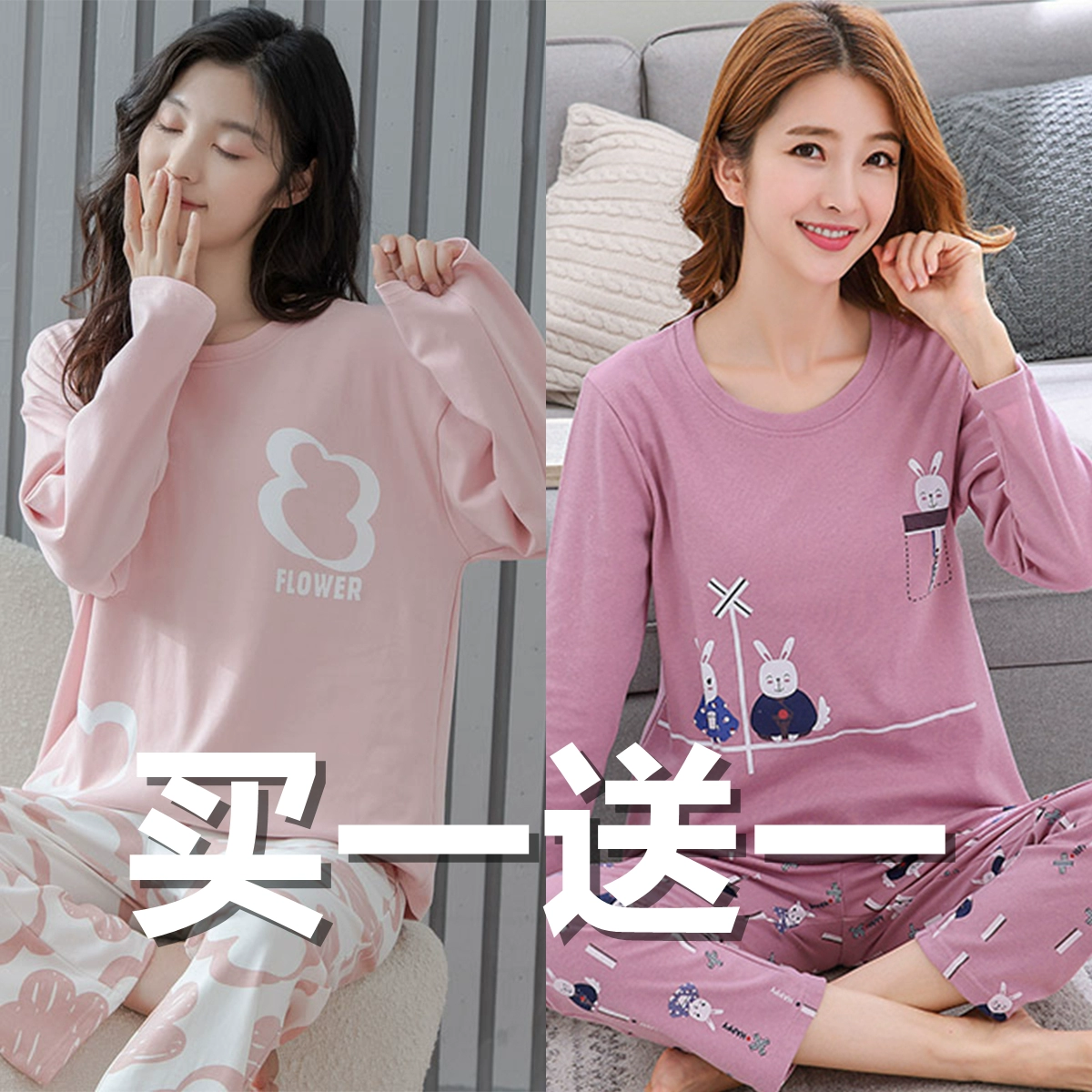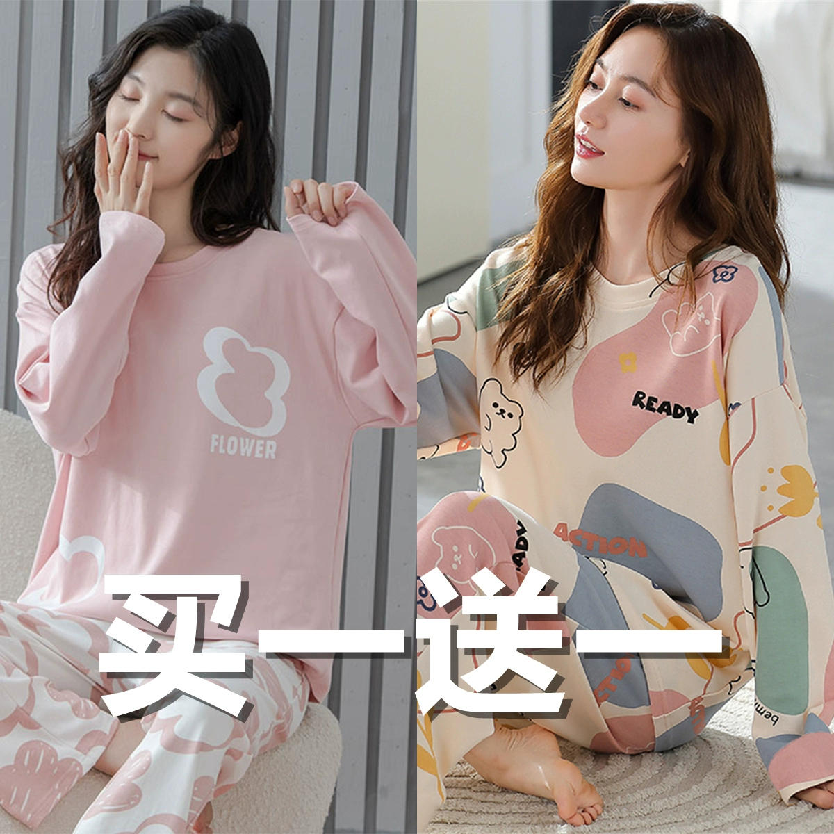 | nameOriginal | Spring and autumn women's pure cotton long-sleeved sweet wearable pajamas |