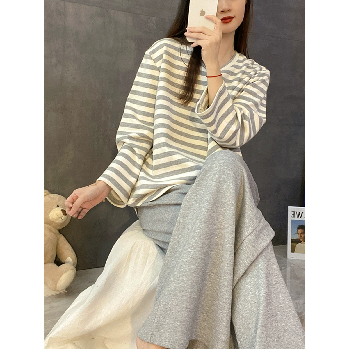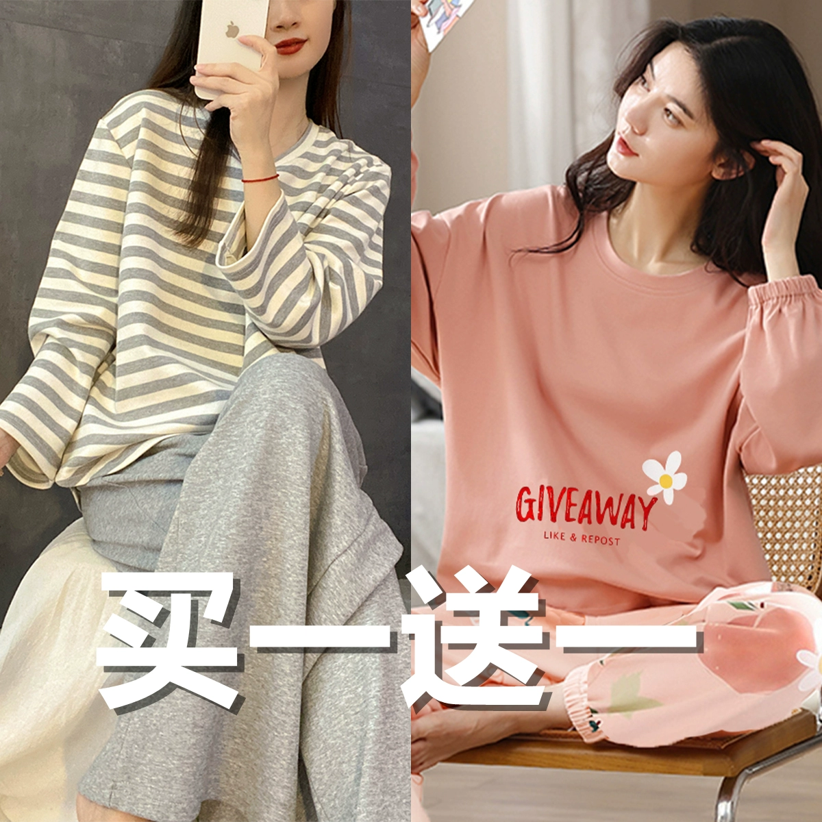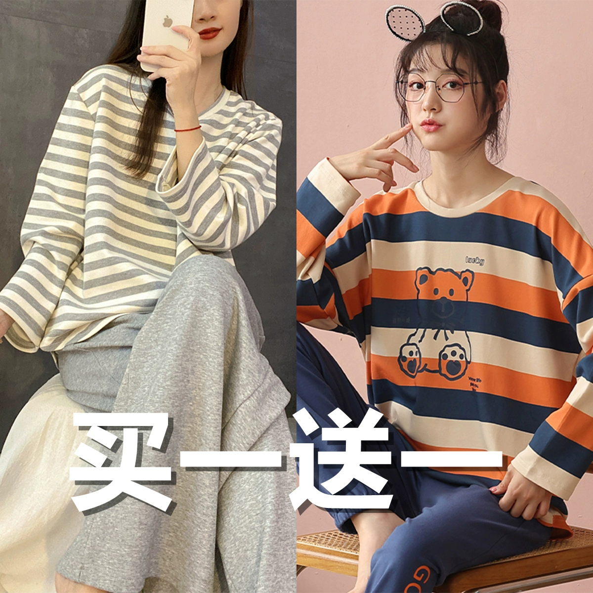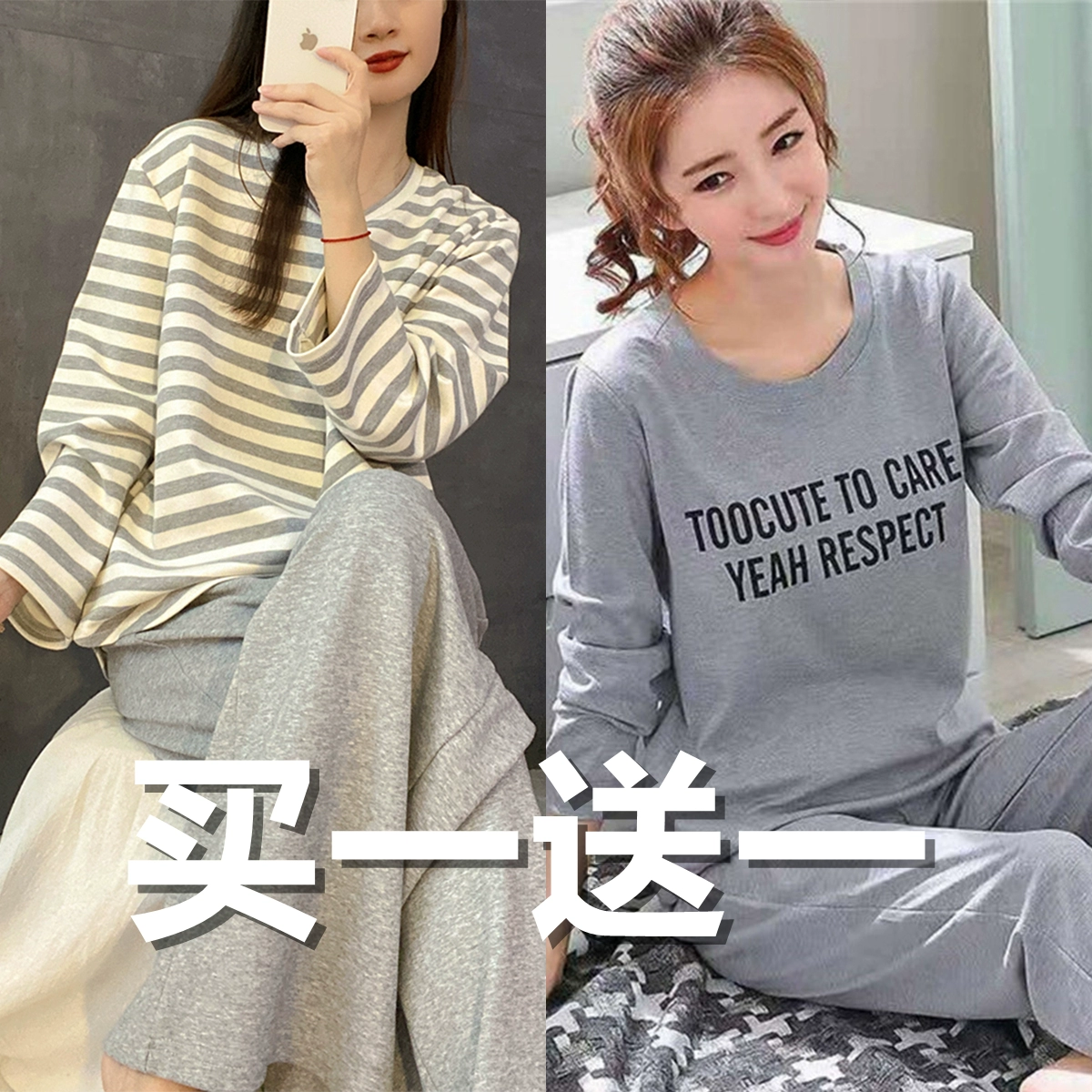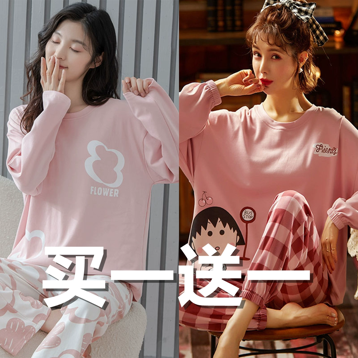 | nameOriginal | Spring and autumn women's pure cotton long-sleeved sweet wearable pajamas |
