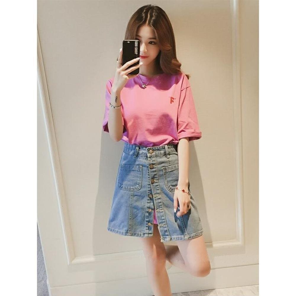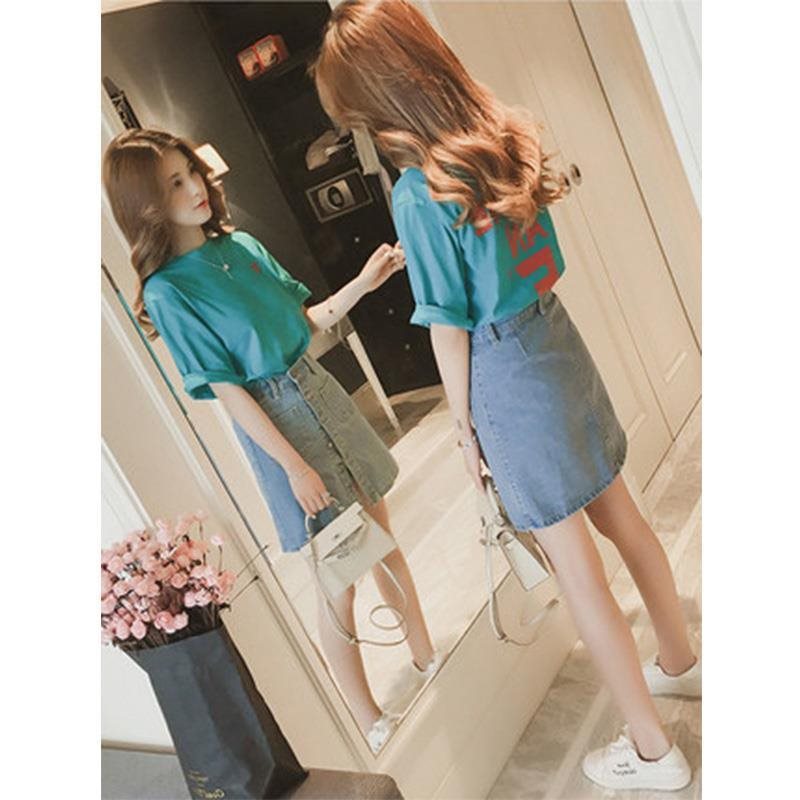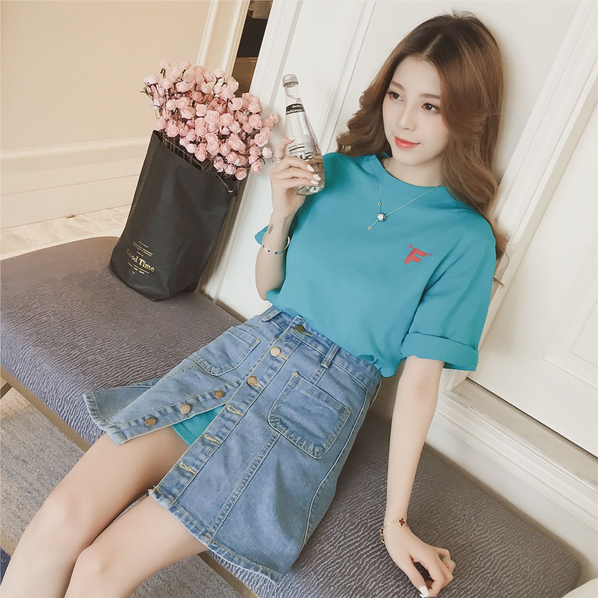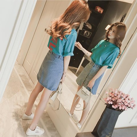 Spring and summer 2022 new net red nifty royal sister goddess fan skirt suit T-shirt foreign style denim skirt two-piece set