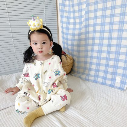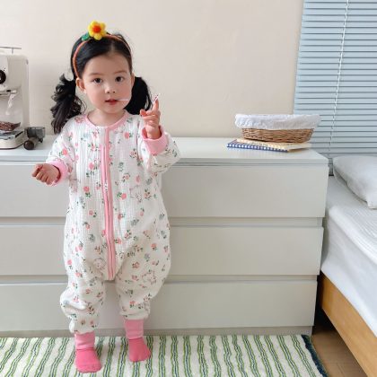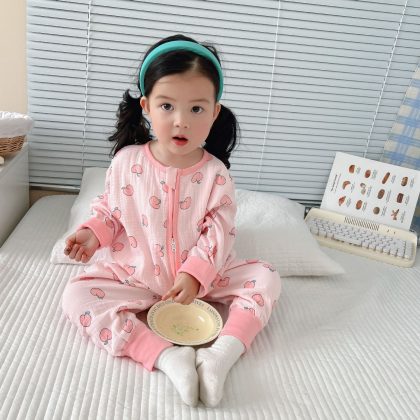 | nameOriginal | Spring and summer 2023 new children's jumpsuit thin long sleeve gauze sleeping bag for boys and girls baby cotton yarn breathable climbing suit |