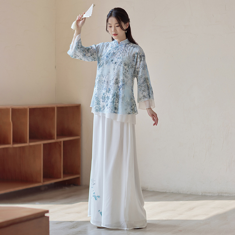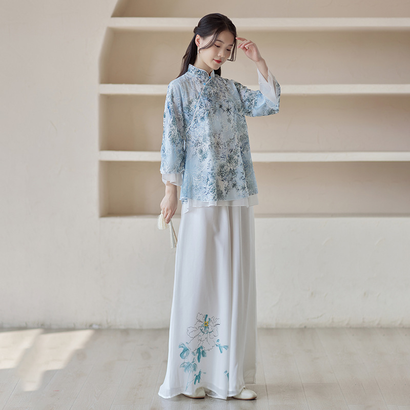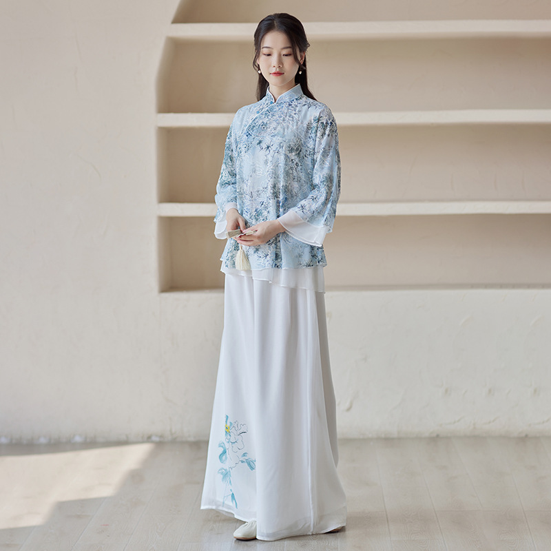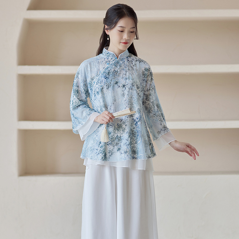 | nameOriginal | Spring and Summer 2023 New Chinese Style Women's Clothing Chinese Vintage Embroidered High-end Modified Tang Suit Top Zen Tea Suit |