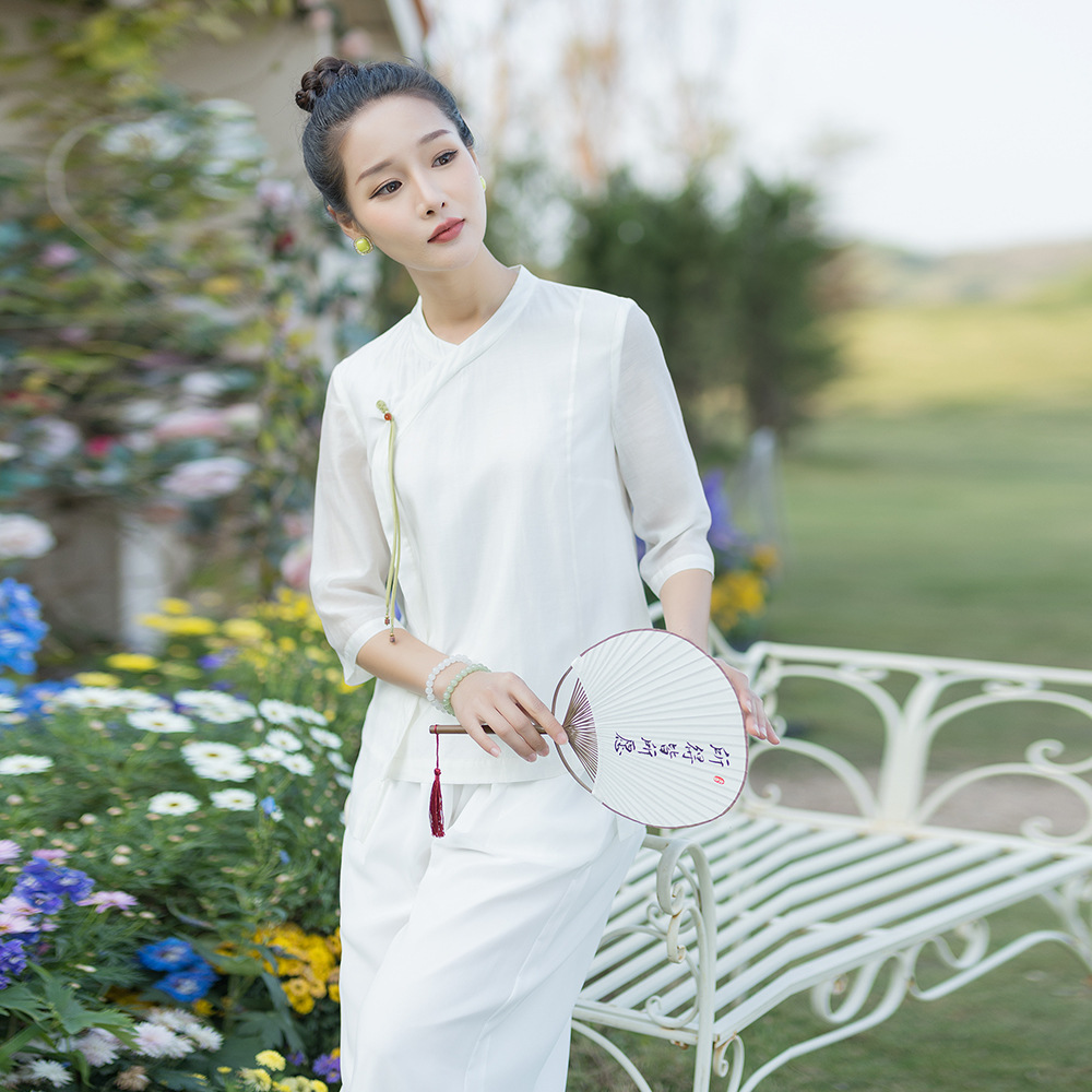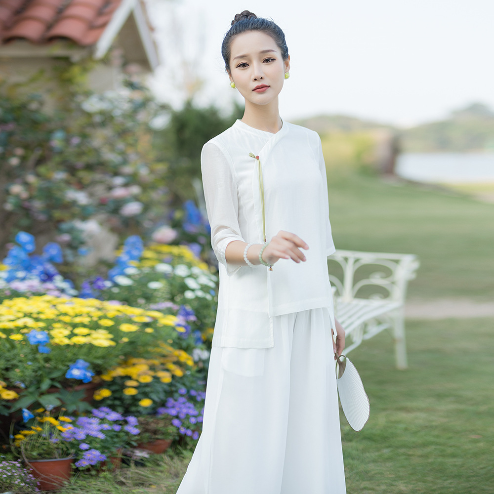 | nameOriginal | Spring and Summer 2023 New Cotton and Linen Zen Suit Tea Artist Art Examination Performance Suit Beauty Work Suit Hanfu Zen Dance Suit |