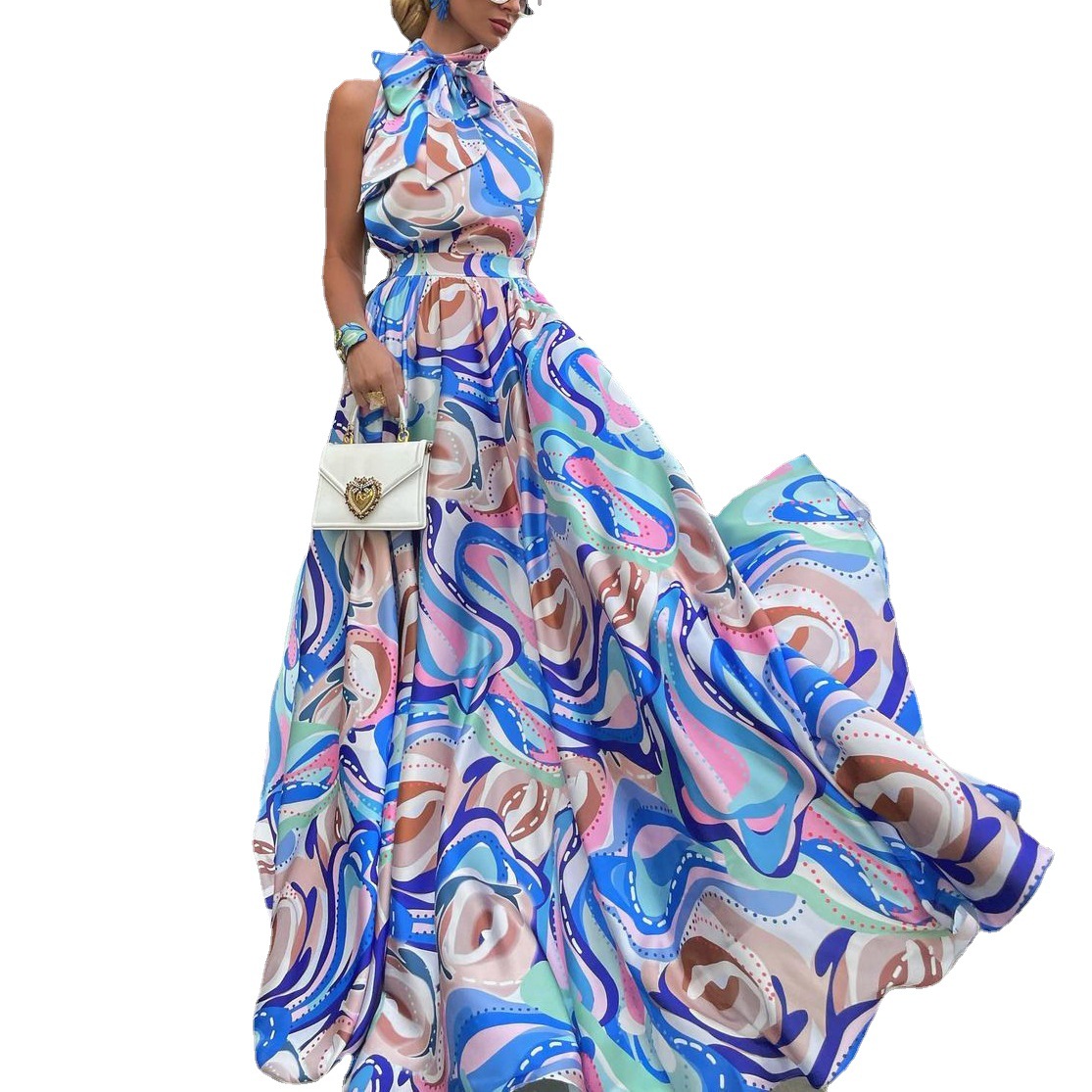| nameOriginal | Spring and Summer 2024 European and American New Women's French Dress Chiffon Sling Blue High Waist Elegant Printed dress |