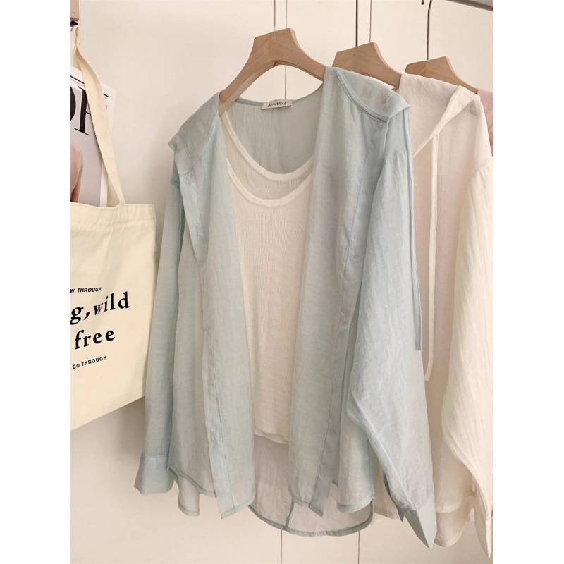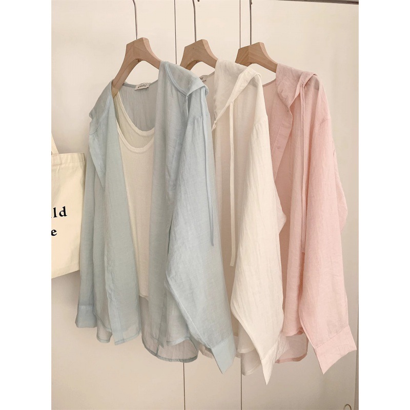 Spring and Summer 2024 Linen Hooded Lightweight Long-sleeved Sunscreen Jacket Loose Casual Air-conditioning Shirt Sunscreen Shirt