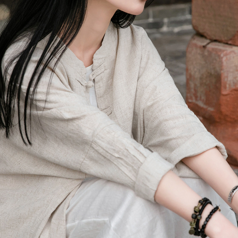 | nameOriginal | Spring and summer 2024 new cotton and linen women's clothing retro Chinese style loose large size stand collar buckle linen cardigan women's coat |