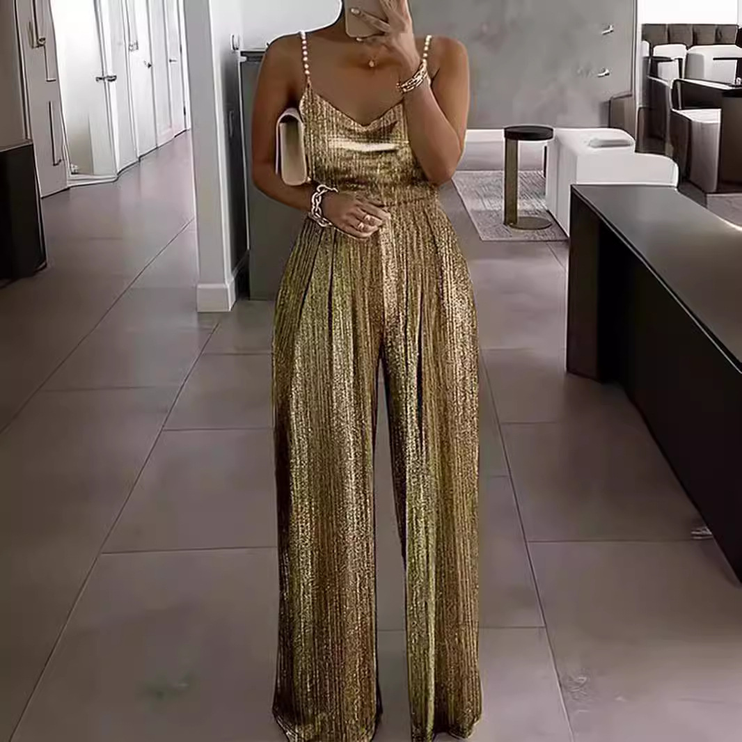 | nameOriginal | Spring and Summer 2024 New Cross-border European and American Women's Wish Wide Leg Pants Tight Waist Dress Elegant Strap Beaded Pants |