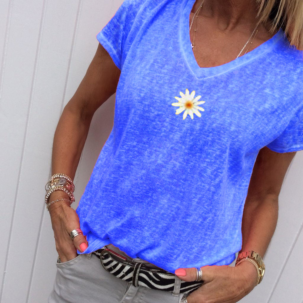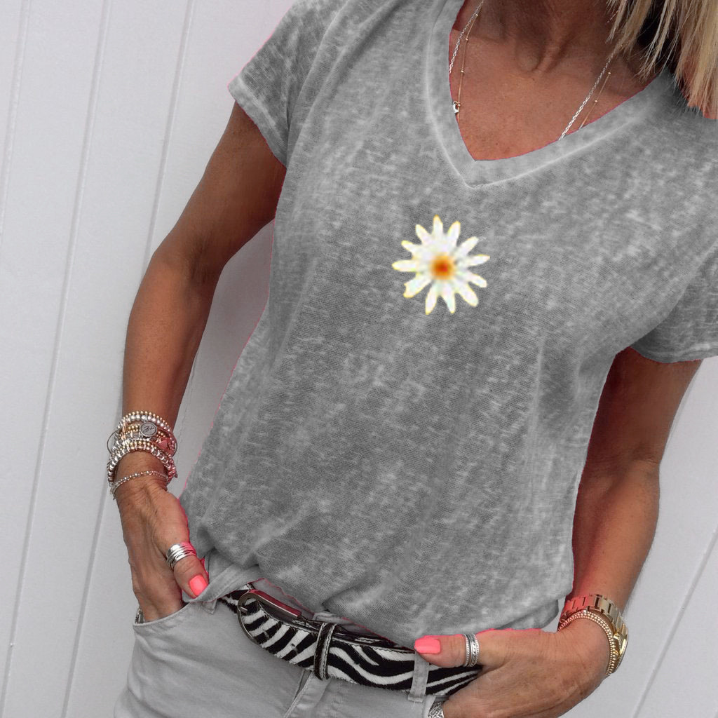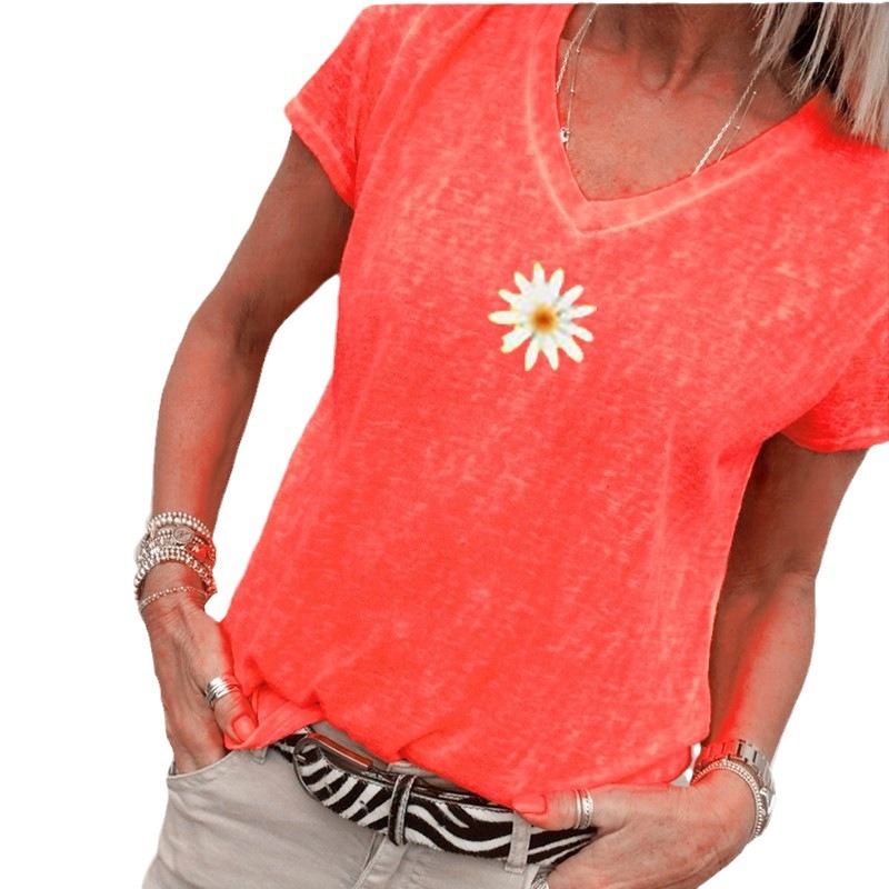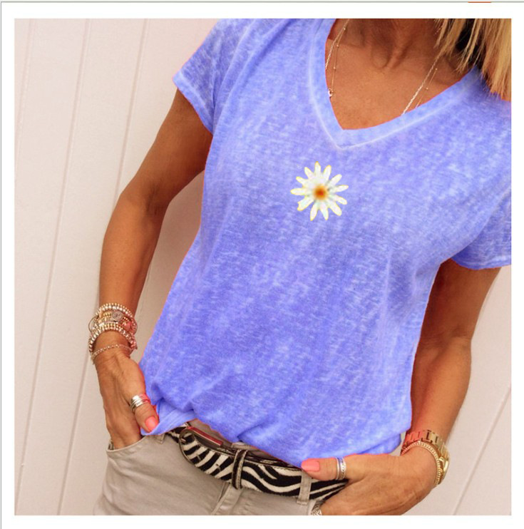 | nameOriginal | Spring and Summer 2024 New European and American Women's Amazon WISH Explosions V-neck Daisy Knitted Women's Short-sleeved T-shirt |