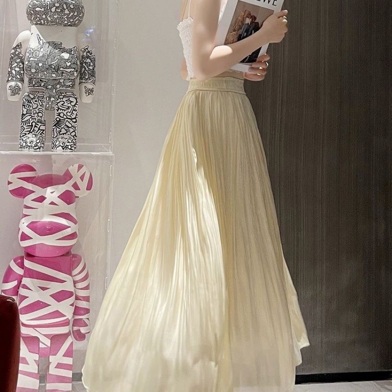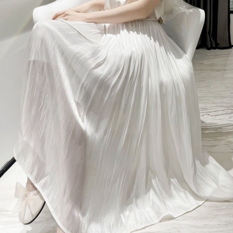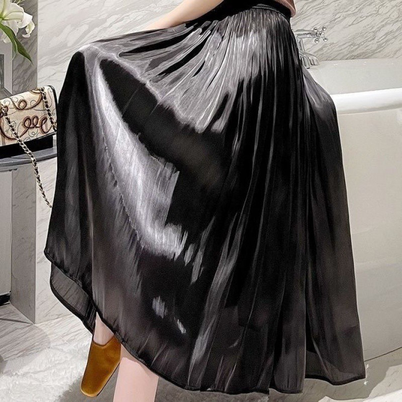 | nameOriginal | Spring and Summer 2024 New Gentle Streamer Copper Ammonia Silk Skirt Women's Pleated Draped High Waist Long Skirt Fairy Trendy Skirt |
