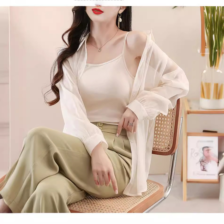 | nameOriginal | Spring and Summer 2024 New Korean Style Simple Elegant All-match Back Strap Design Sense Sun-protection Shirt Top for Women |