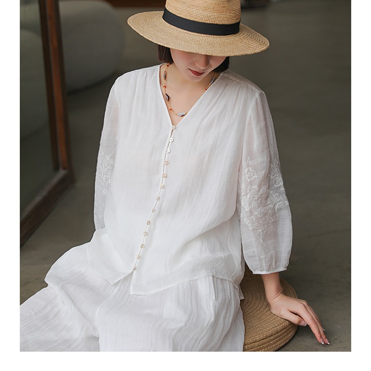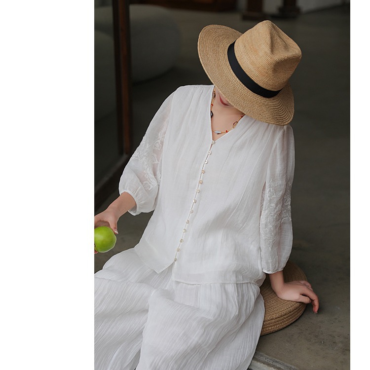 | nameOriginal | Spring and Summer 2024 New Ramie Twisted Wide Wrinkled Embroidery Casual Cool Cardigan Top |