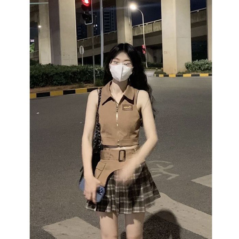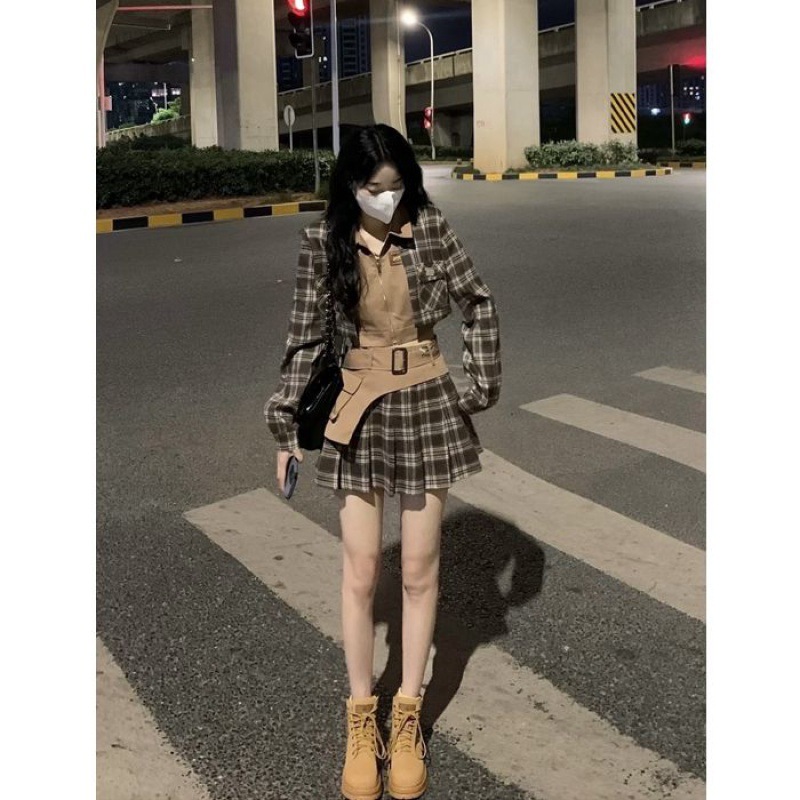 | nameOriginal | Spring and Summer 2024 New Spice Girls Plaid Short Jacket Women's POLO Collar Vest High Waist Pleated Skirt Three-piece Set |