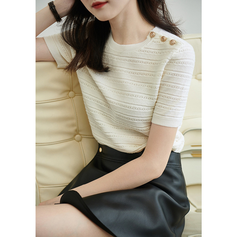 | nameOriginal | Spring and Summer 2024 New Style Chanel Style Elegant Thin Short-sleeved Knitted Sweater Women's Hollow Loose All-match T-shirt Top Trendy |