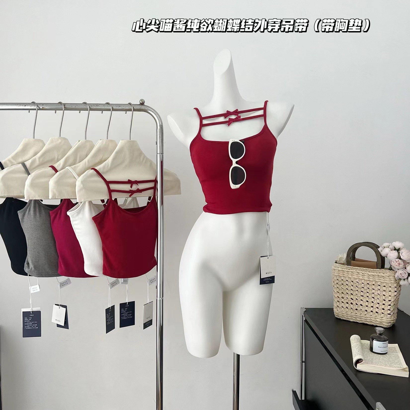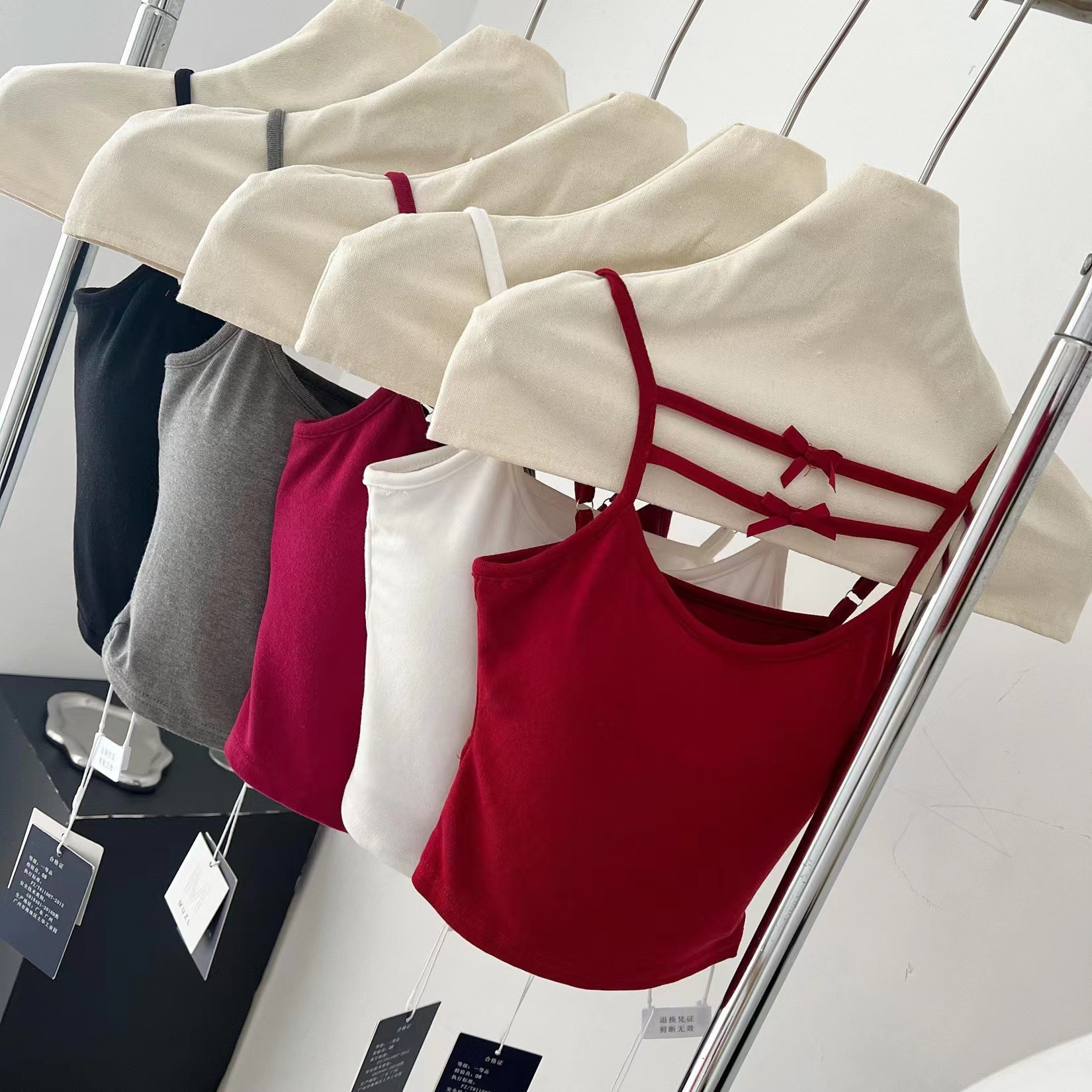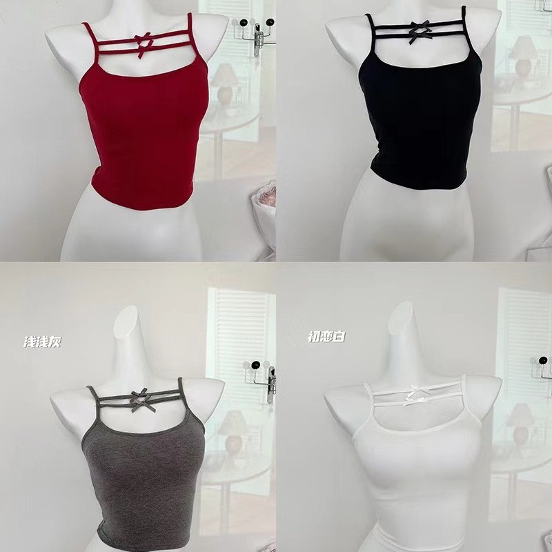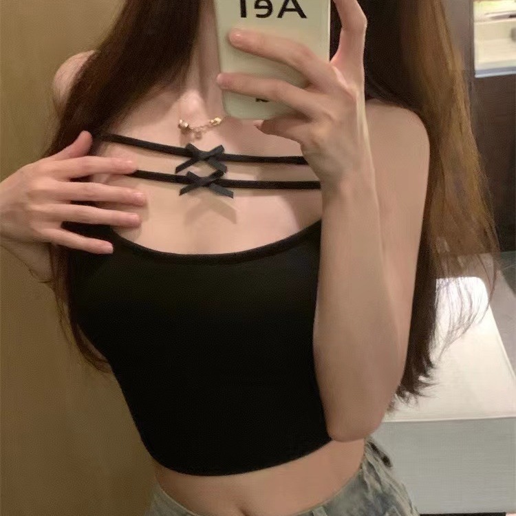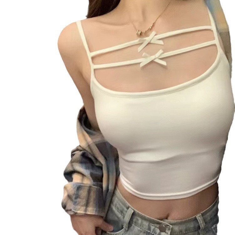 Spring and Summer 2024 New Style Pure Desire Style Bow Camisole Vest with Chest Pad Inner Wearing Navel Exposed Underwear for Women