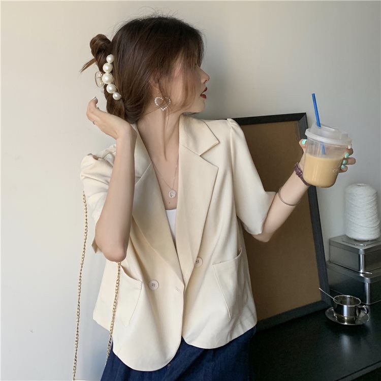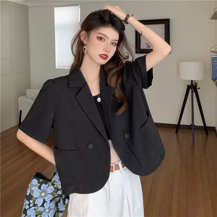 Spring and Summer 2024 New Thin Short Sleeve Casual Short Suit Top Fashion Small Suit Women's Short Jacket