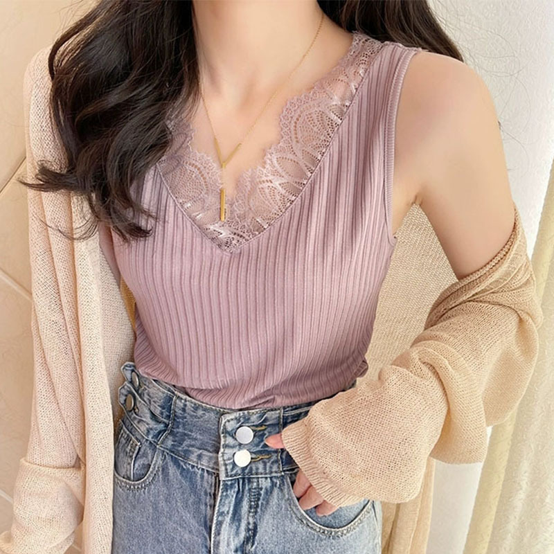 | nameOriginal | Spring and Summer 2024 New V-neck Modal Stitching Lace Inner Camisole Small Vest Beautiful Back Sleeveless Top for Women |