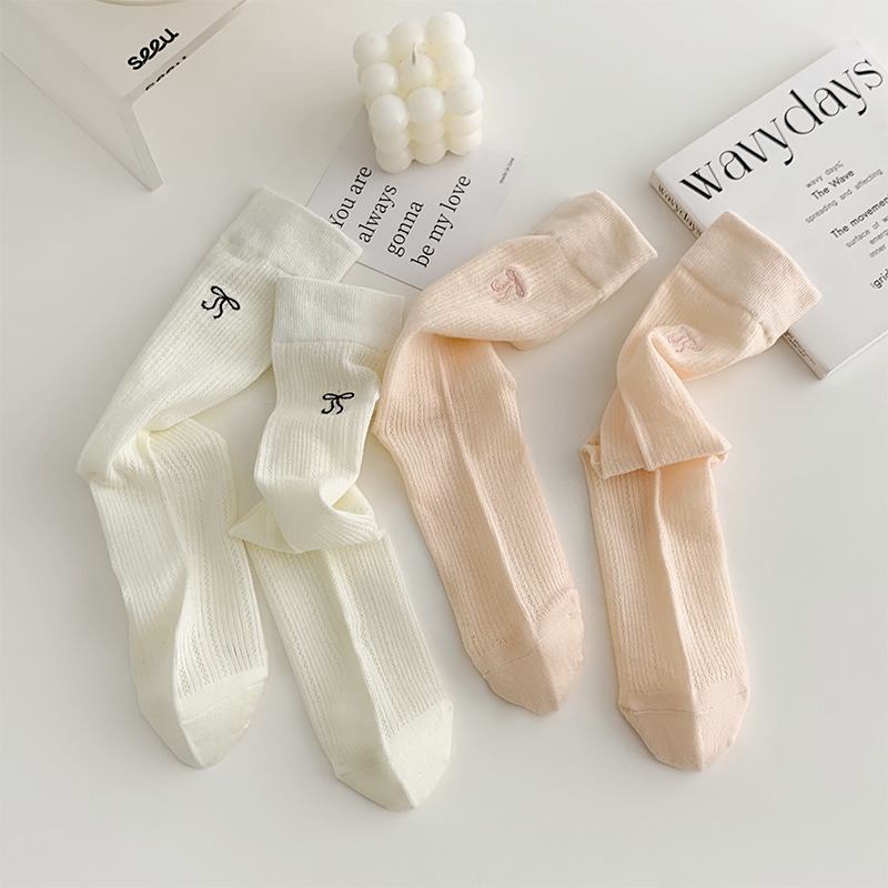 | nameOriginal | Spring and summer 2024 thin bow ballet style JK sweet girl hollow mesh tube pile socks |