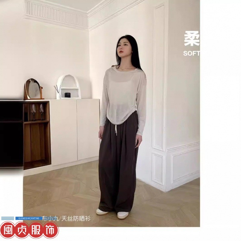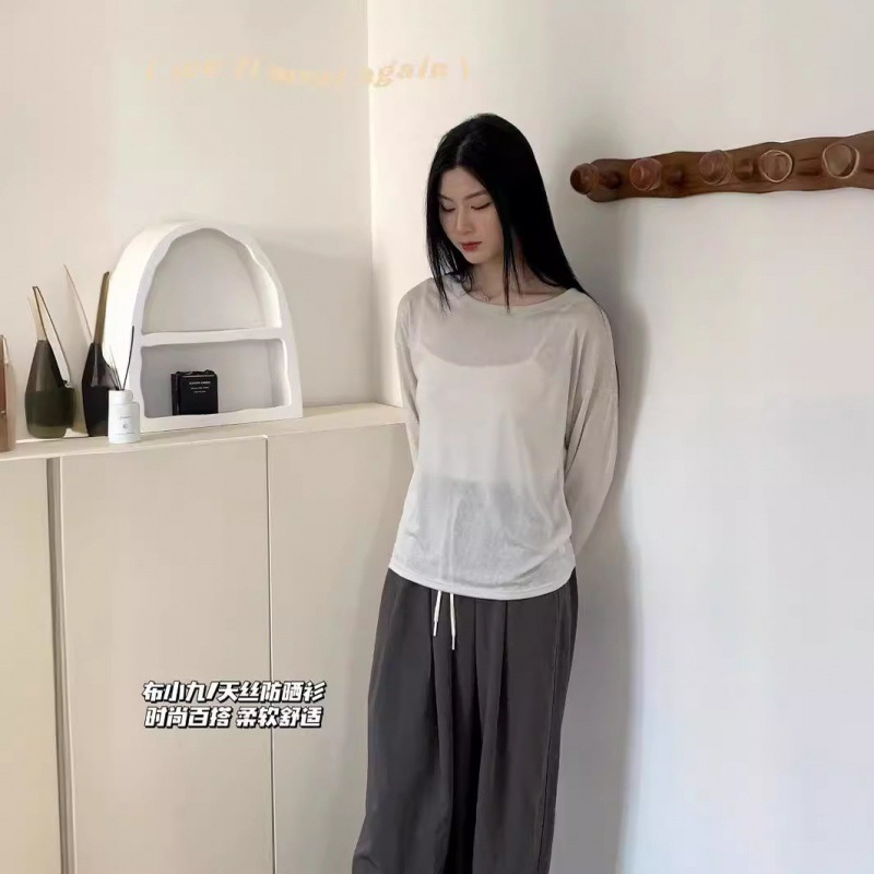| nameOriginal | Spring and Summer 2024 Thin Cloth Xiaojiu/Tencel Sunscreen Shirt Women's Korean-style Loose Lazy Crewneck Knitted Air-conditioning Shirt |