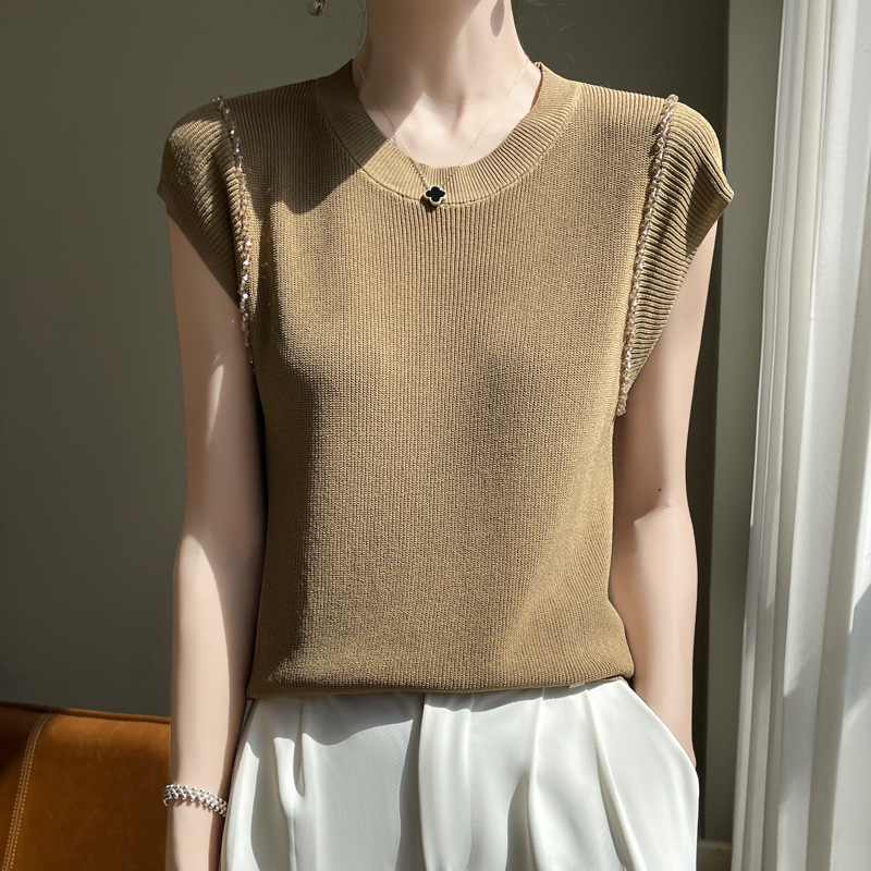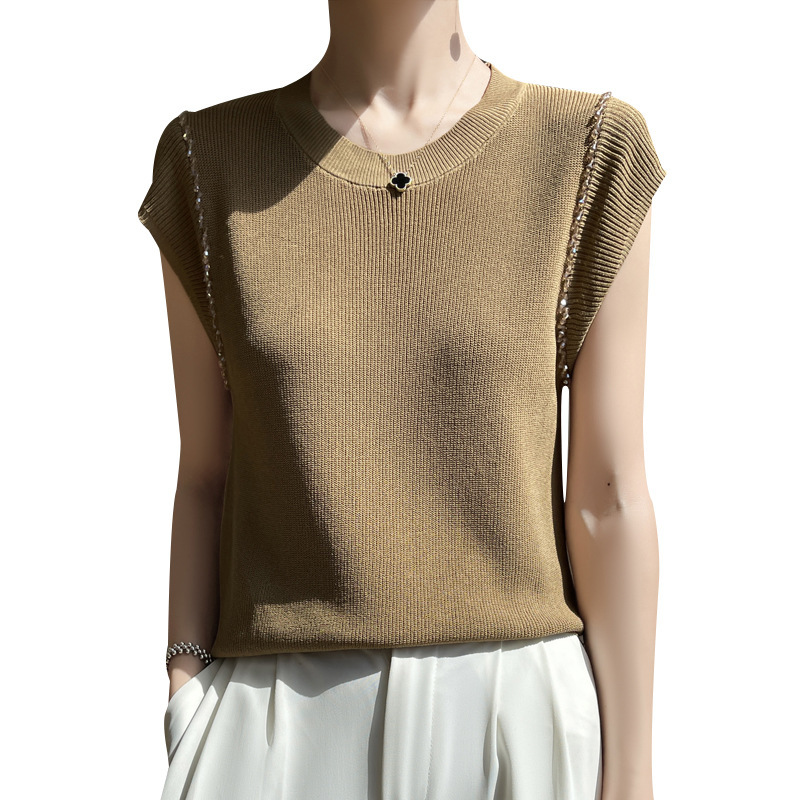 | nameOriginal | Spring and Summer 24 New Quzhu Knitted Shirt Crewneck Women's French Backing Inner Vest Knitted Backing Outer Top |