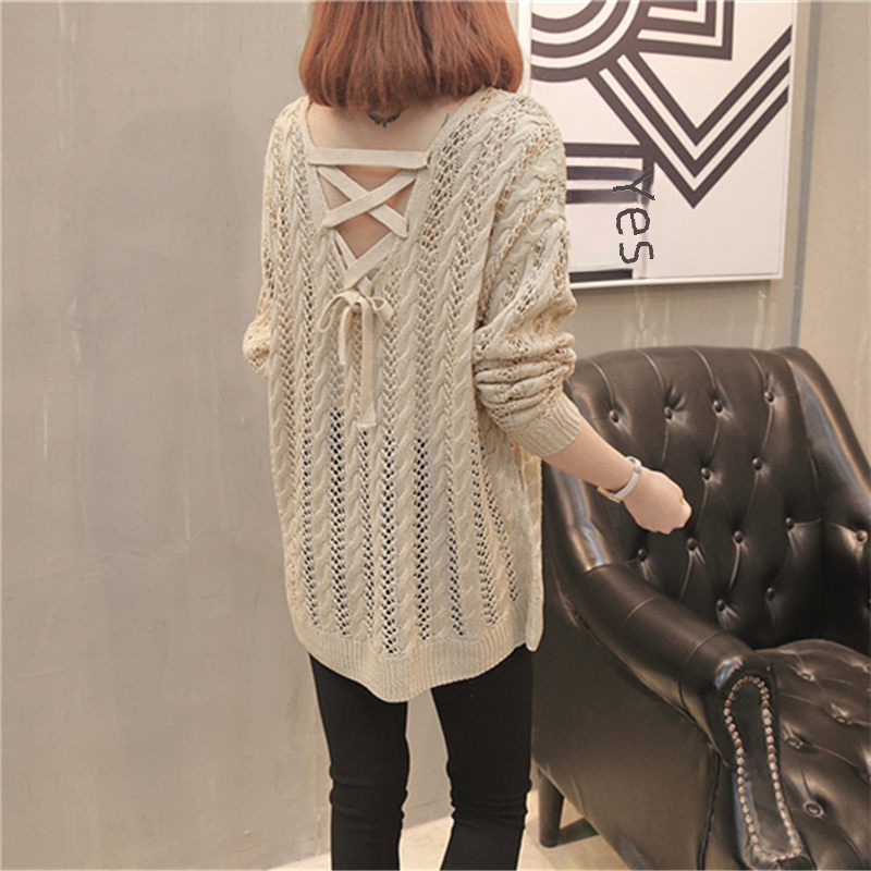 | nameOriginal | Spring and Summer Back Lace-up New Hollow-out Knitwear Women's Loose Pullover V-Neck Sweater Women's Thin Long-sleeved Blouse |