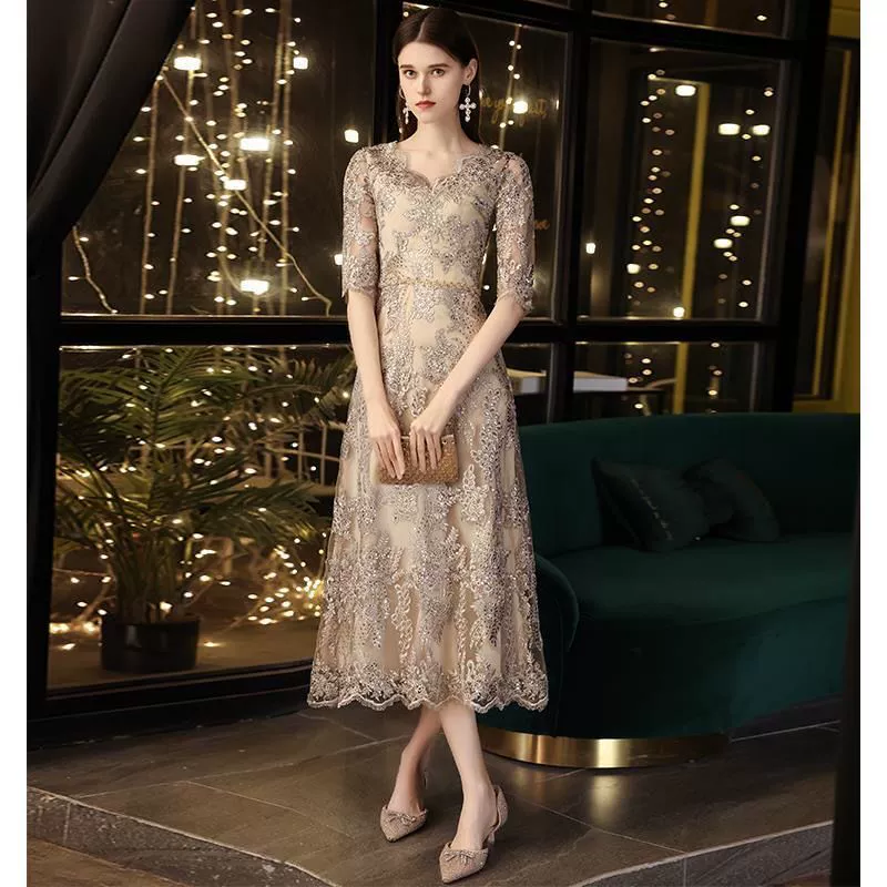 | nameOriginal | Spring and summer banquet niche light luxury evening dress female celebrity temperament embroidered host dress luxury dress |