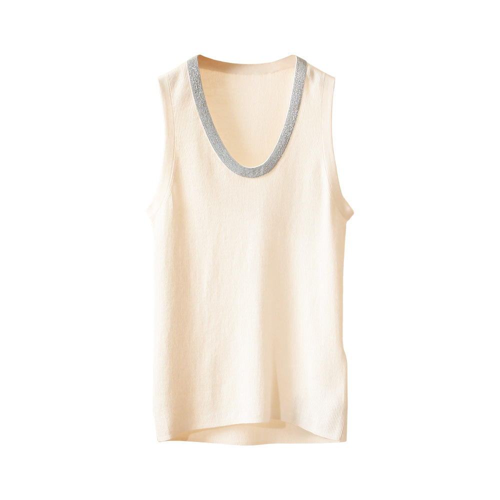 | nameOriginal | Spring and Summer BC new silk wool knitted vest U collar sexy pullover chain silk wool top bottoming shirt for women |