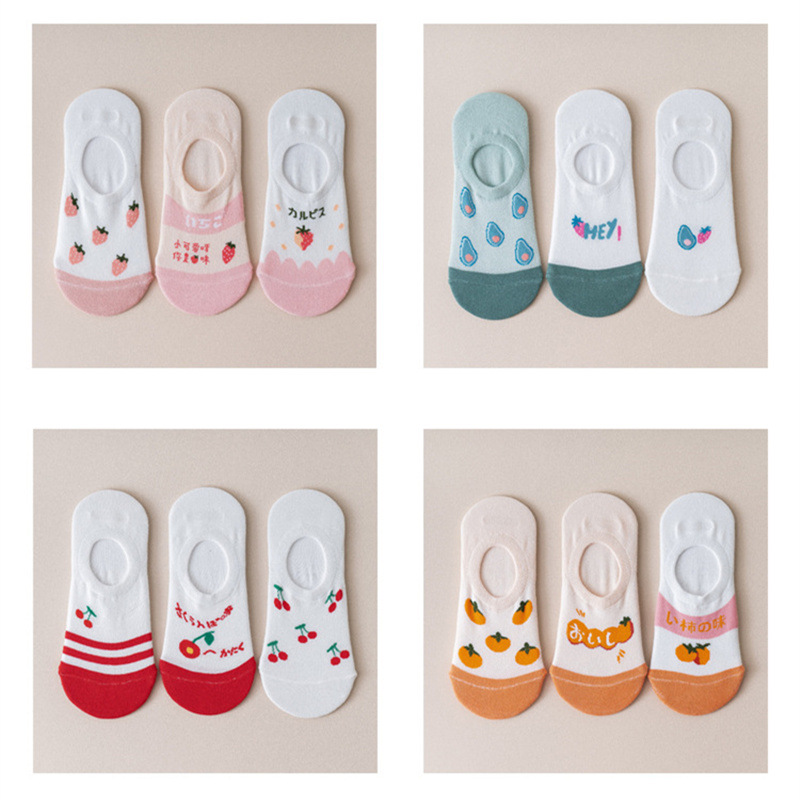Spring and Summer Boat Socks Women's Mesh Breathable Invisible Boat Socks Cute Small Fruit Shallow Top Socks Women's Silicone Non-slip Cotton Socks